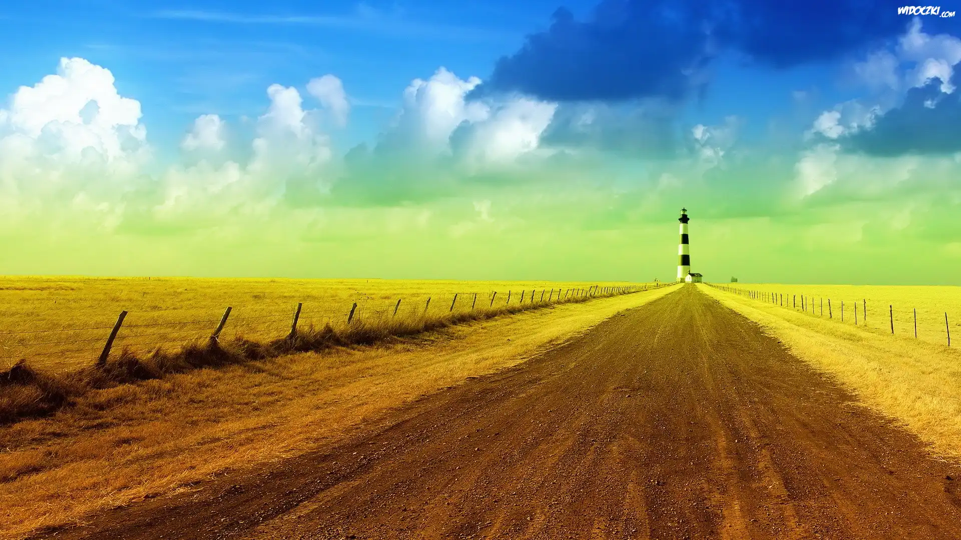 Zdjęcia, Droga, Pola, Latarnia, Morska, Chmury