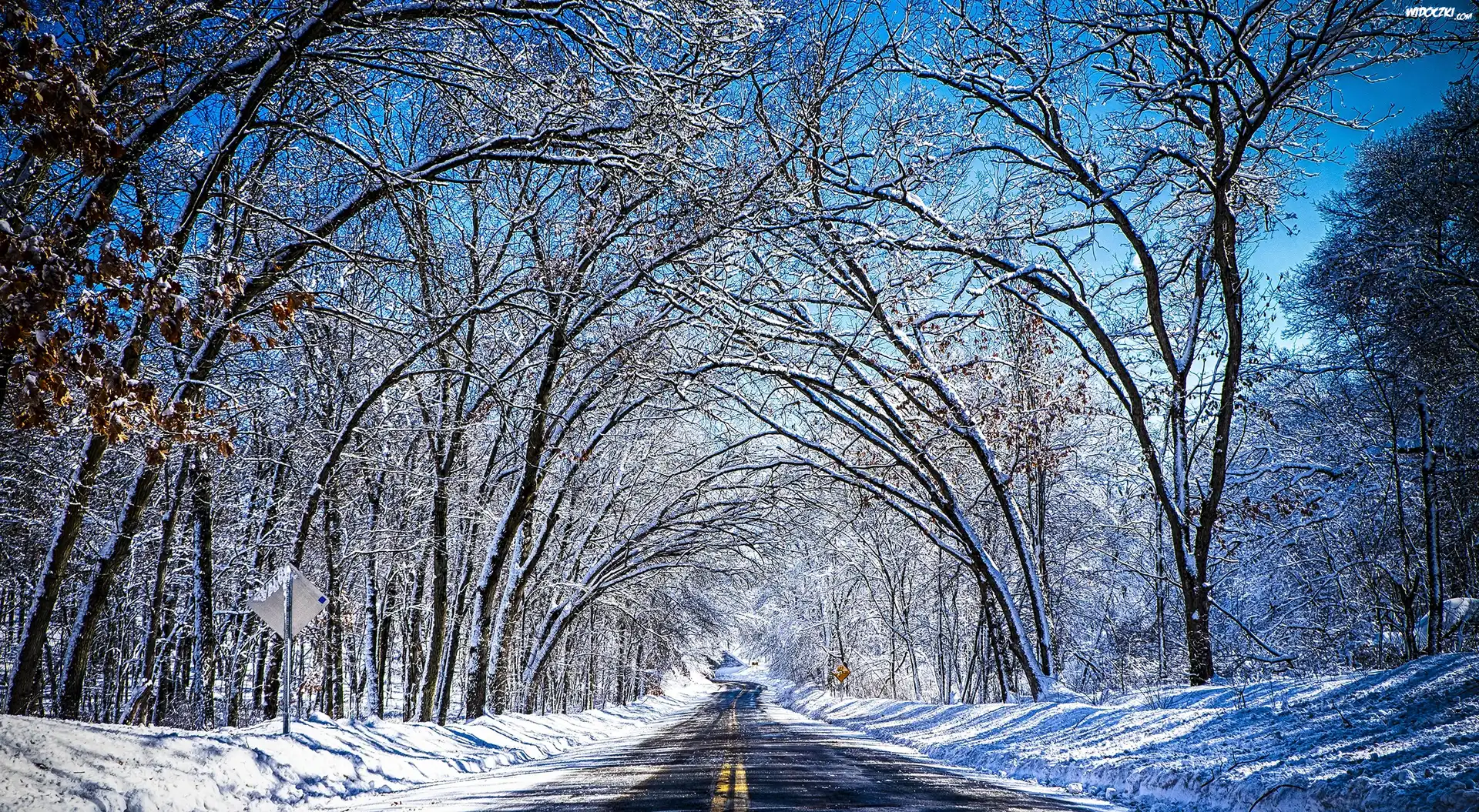 Zdjęcia, Droga, Zima, Śnieg, Drzewa