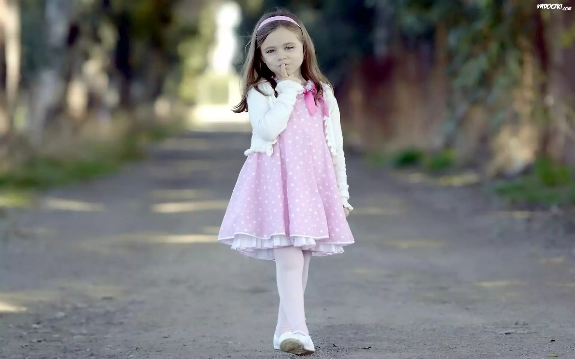 Zdjęcia, Droga, Dziewczynka, Różowa, Sukienka, Opaska, Spacer
