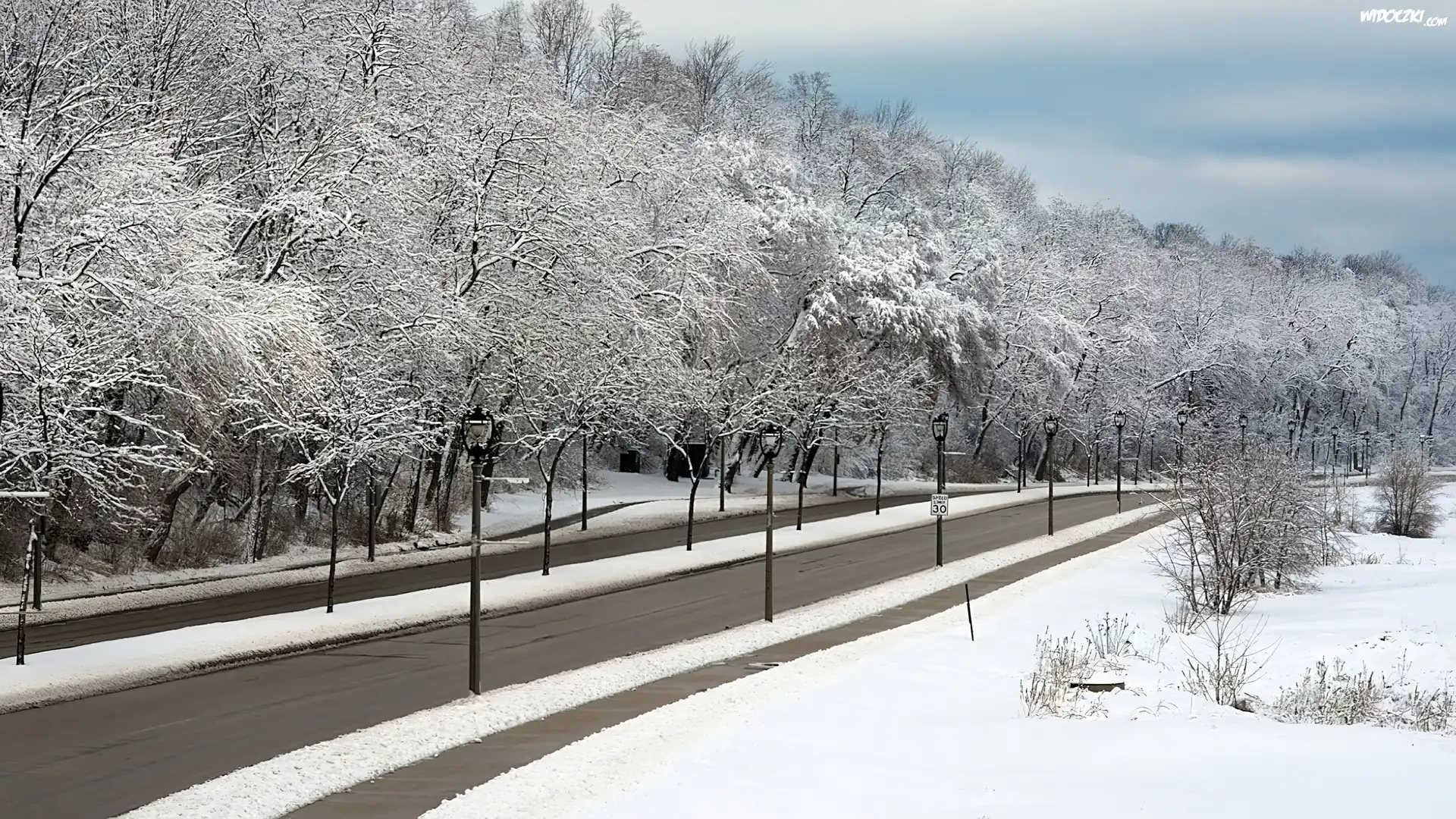 Zdjęcia, Droga, Zima, Oszronione, Drzewa