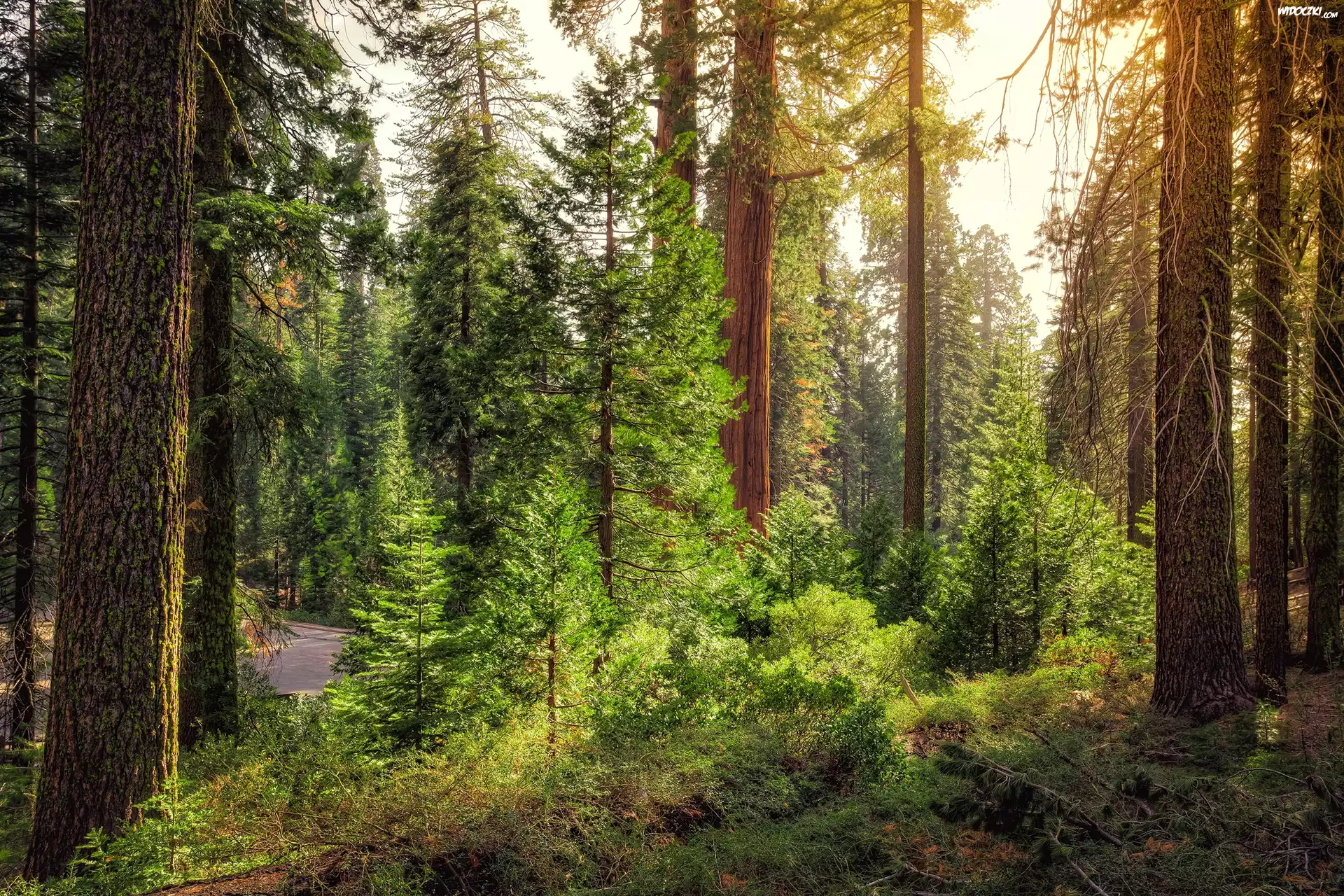 Zdjęcia, Stany Zjednoczone, Stan Kalifornia, Park Narodowy Kings Canyon, Las, Droga