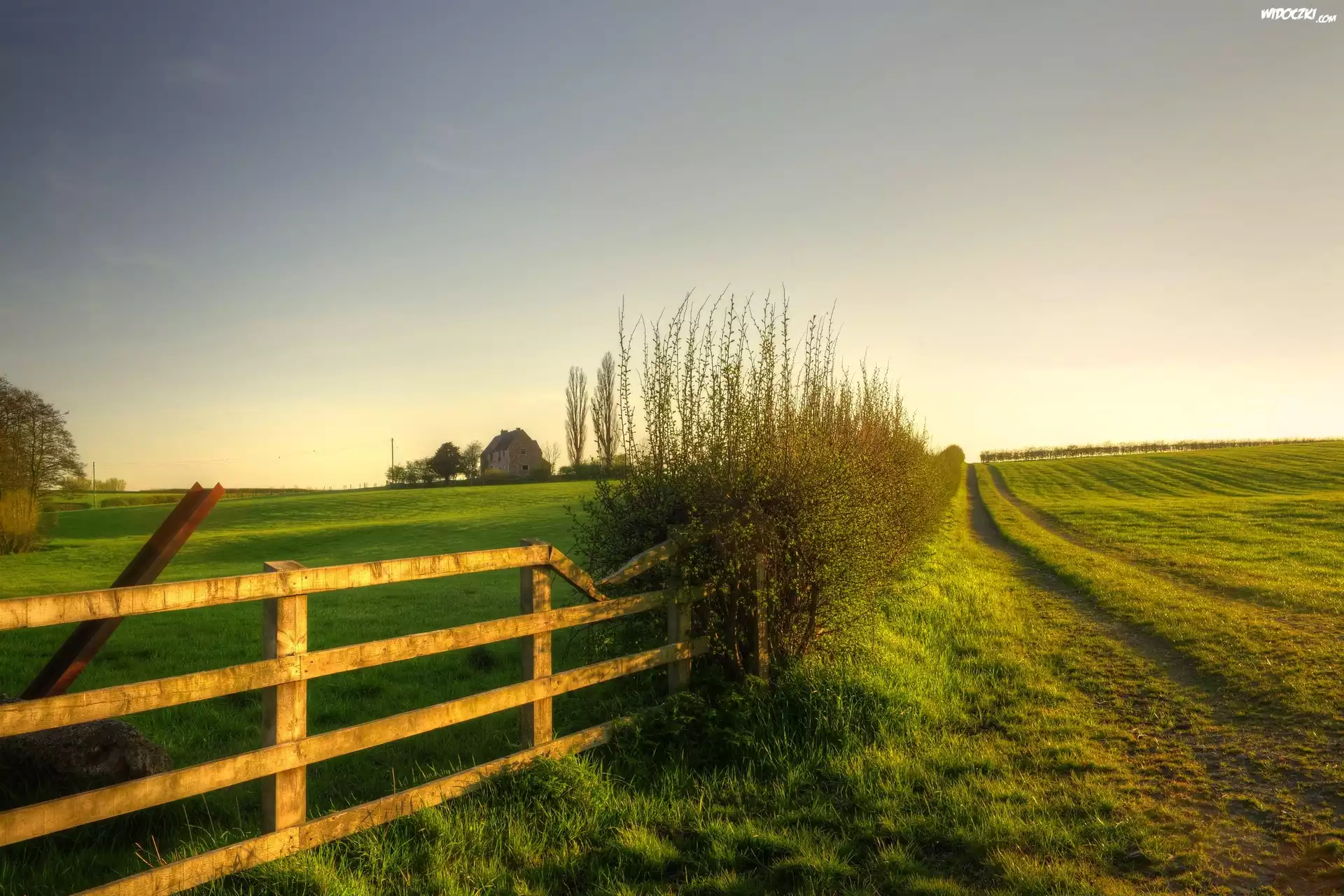 Zdjęcia, Łąki, Płot, Polna, Droga, Dom