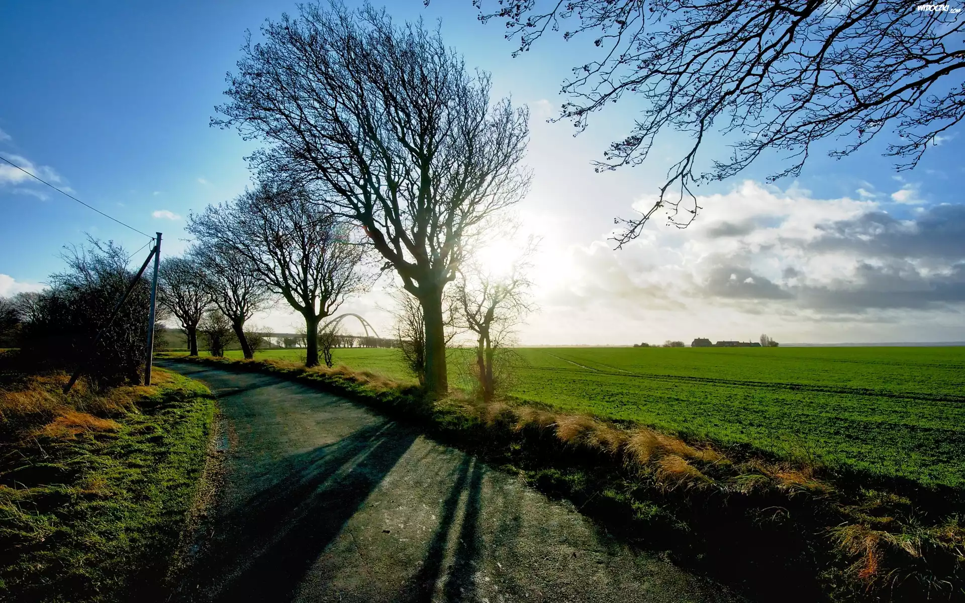 Droga, Drzewa, Pola, Poranek