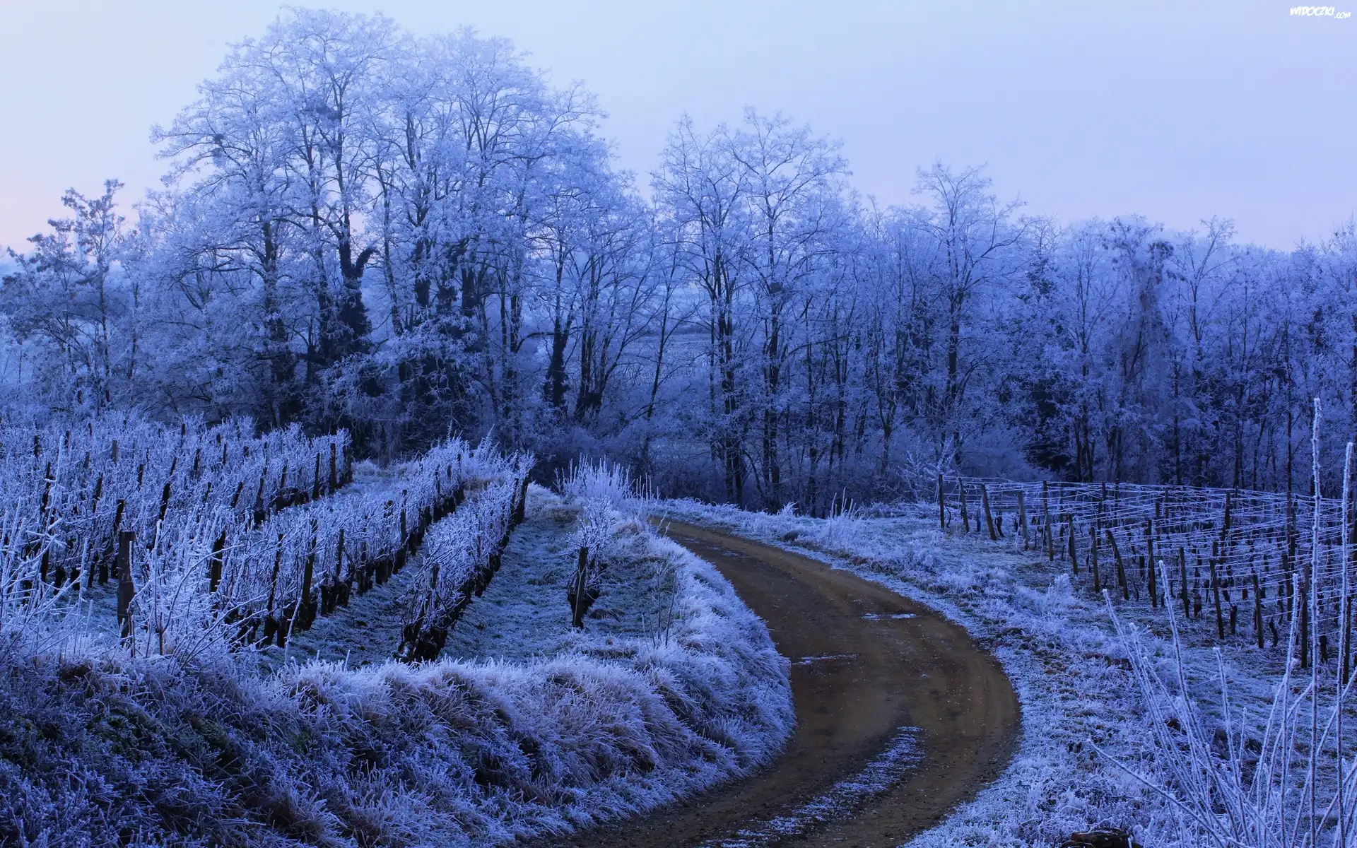 Zdjęcia, Droga, Drzewa, Pola, Zima