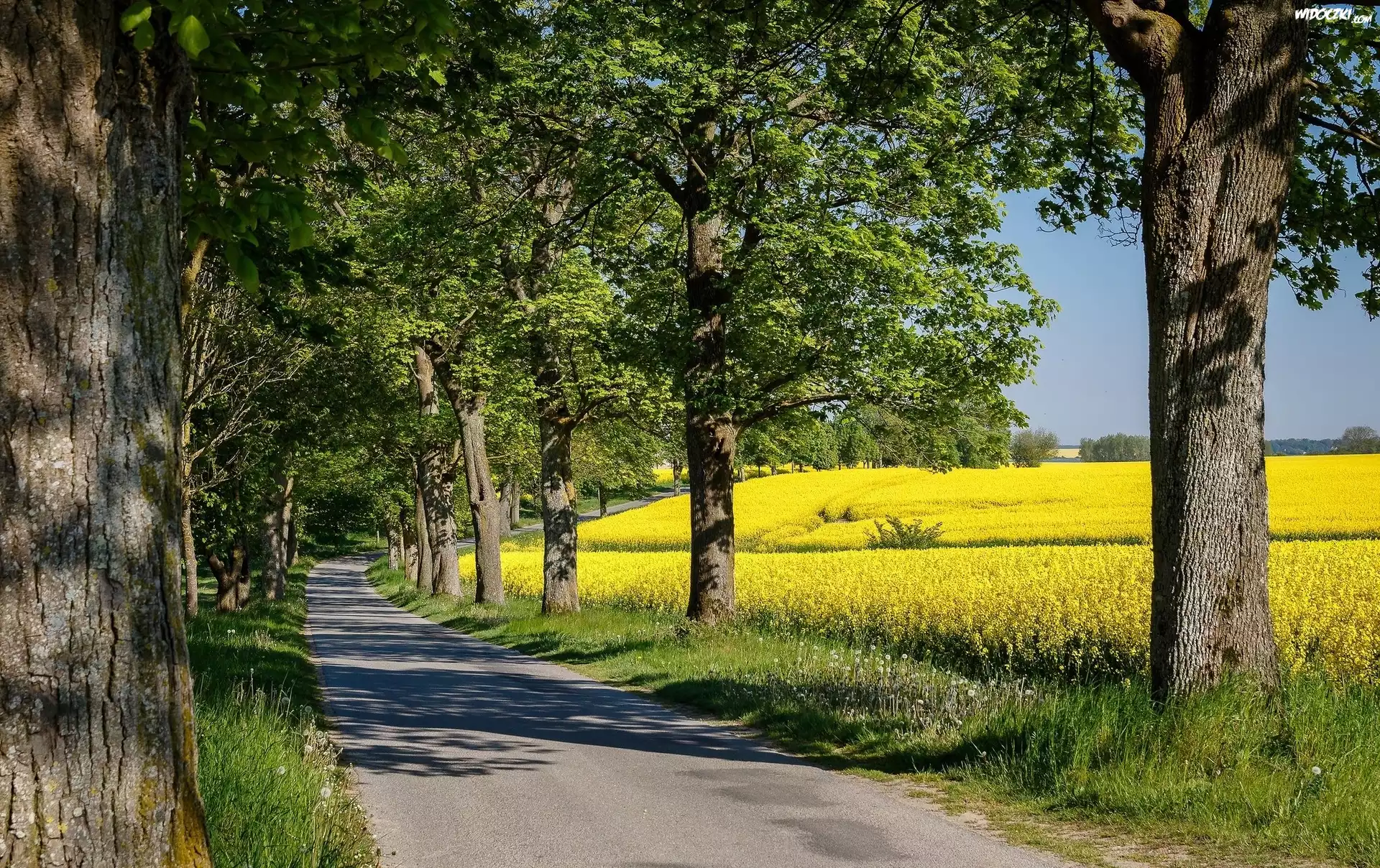 Zdjęcia, Droga, Drzewa, Pole, Rzepak