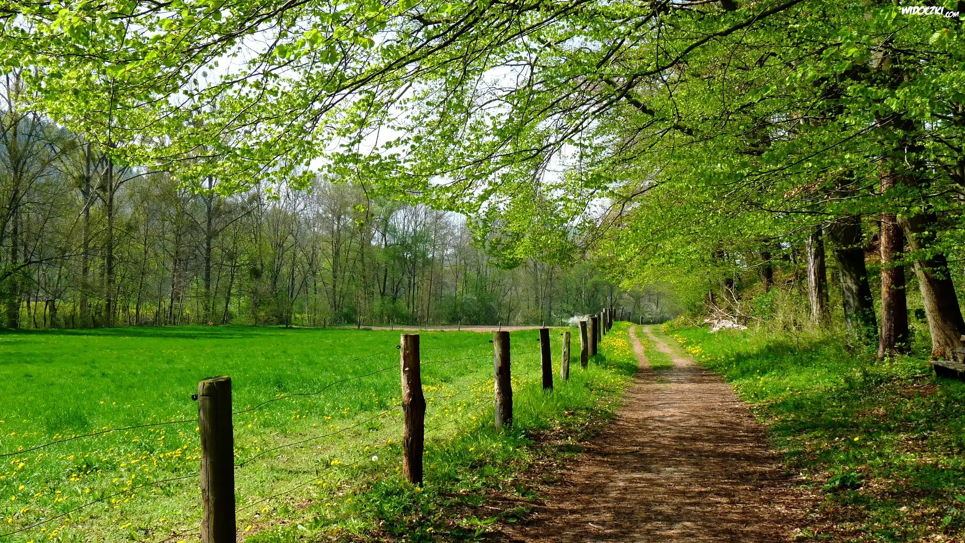 Zdjęcia, Polna, Droga, Łąka, Trawa, Drzewa, Gałęzie, Ogrodzenie