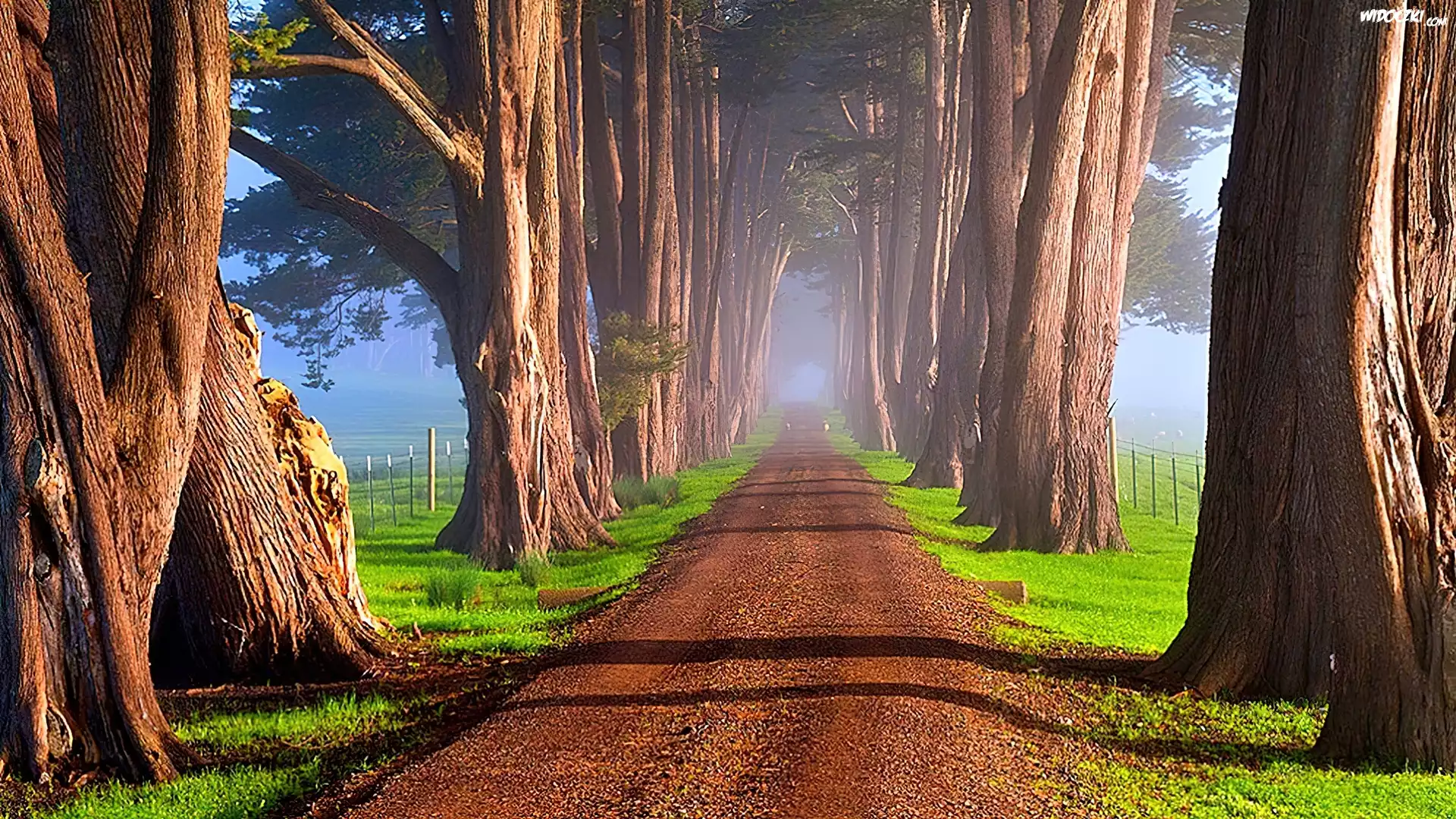 Zdjęcia, Droga, Szpaler, Drzew, Poranek, Mgła