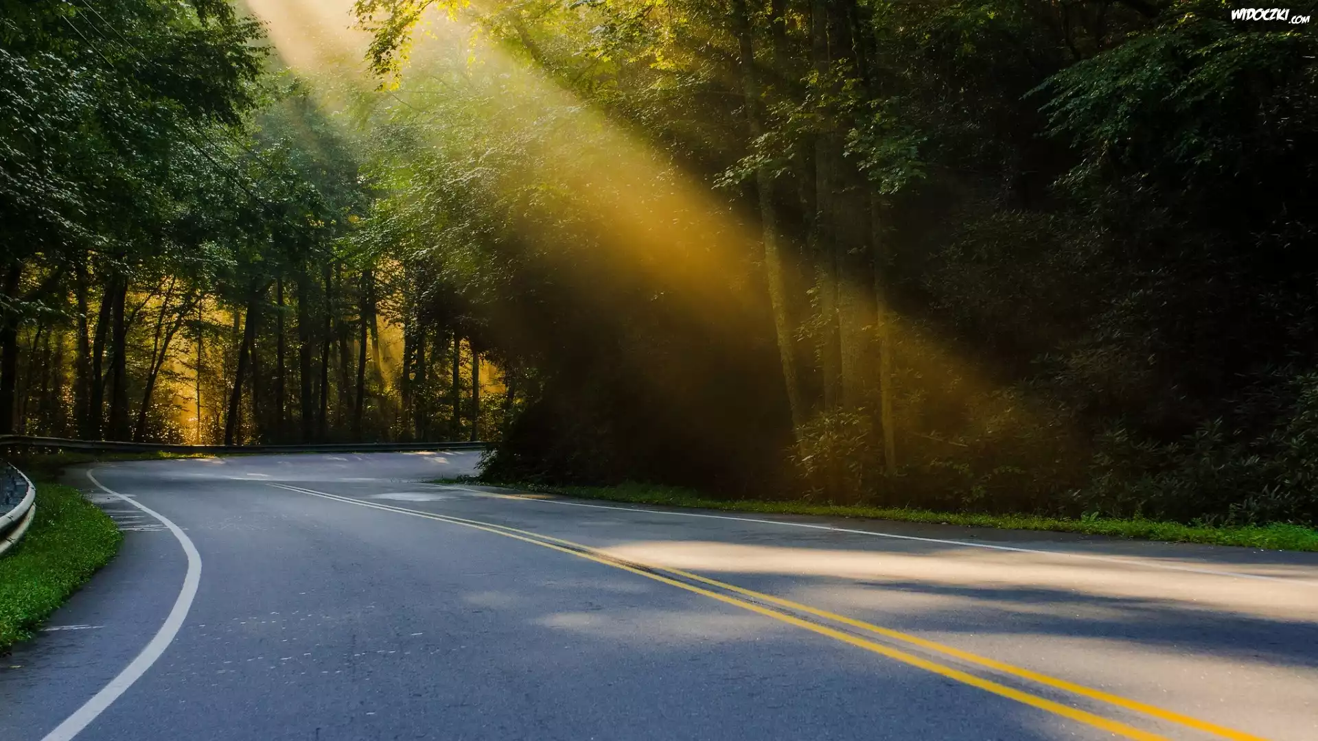 Zdjęcia, Droga, Las, Promienie, Słońca