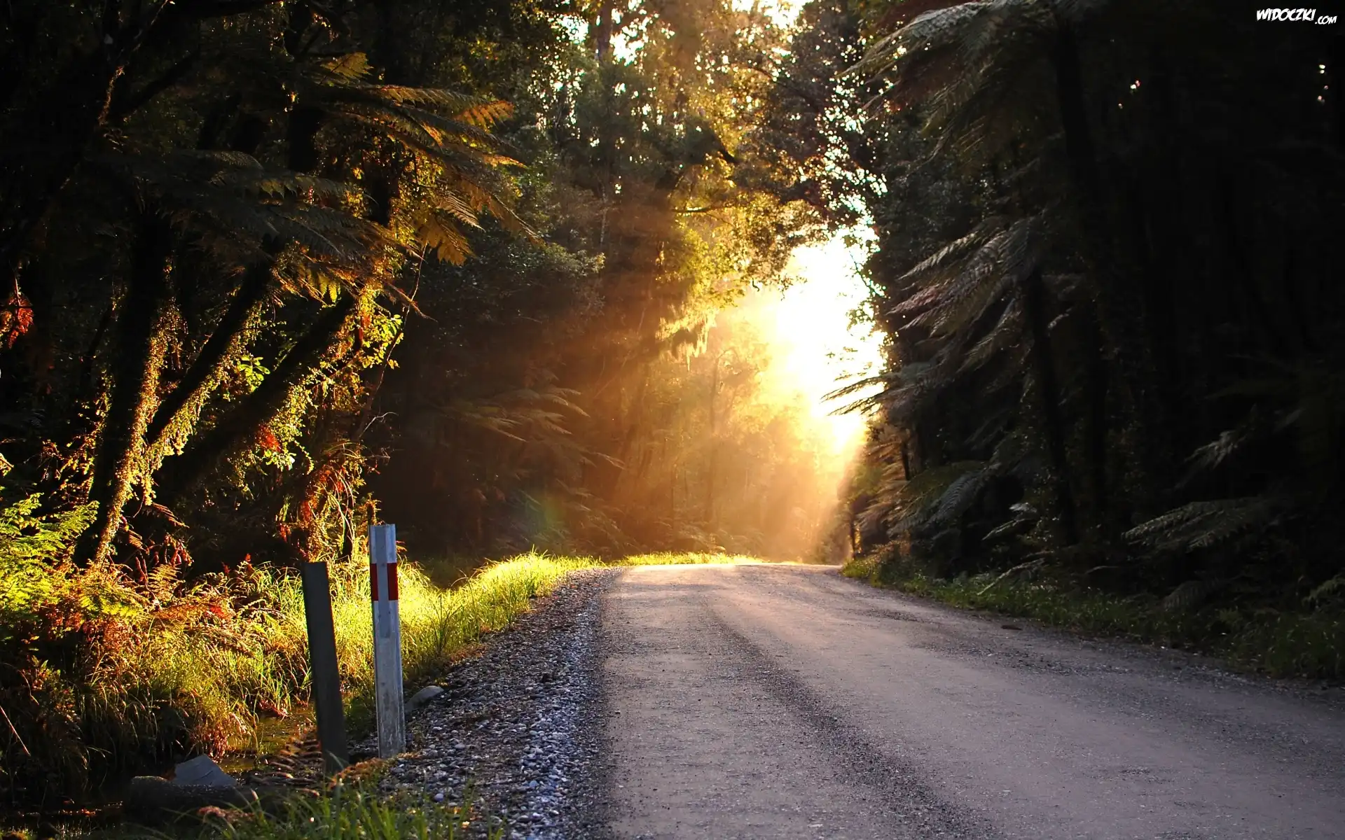 Zdjęcia, Droga, Las, Promienie, Słońca