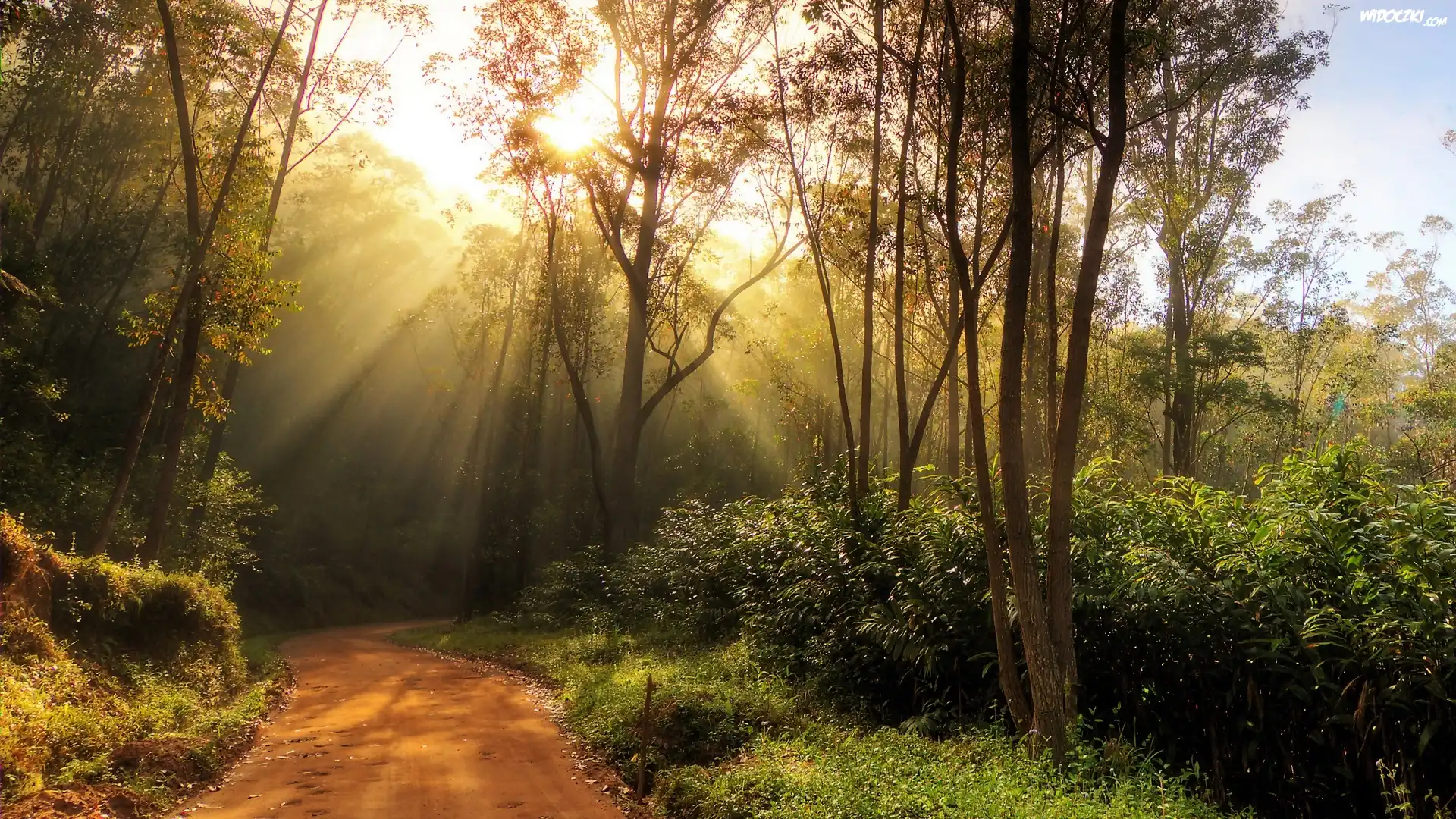 Droga, Las, Promienie, Słońca