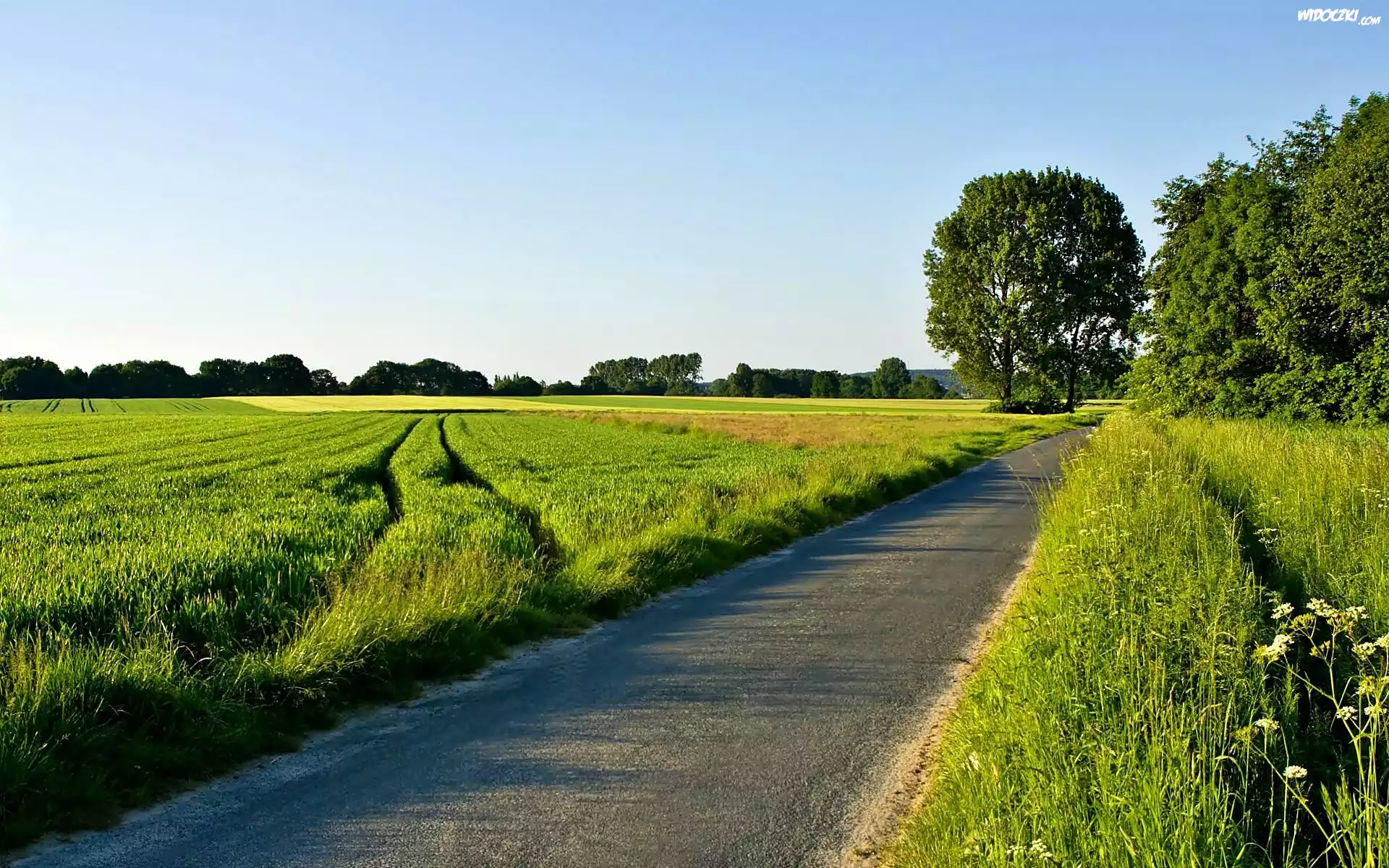 Zdjęcia, Droga, Pole, Drzewa, Przebijające, Światło