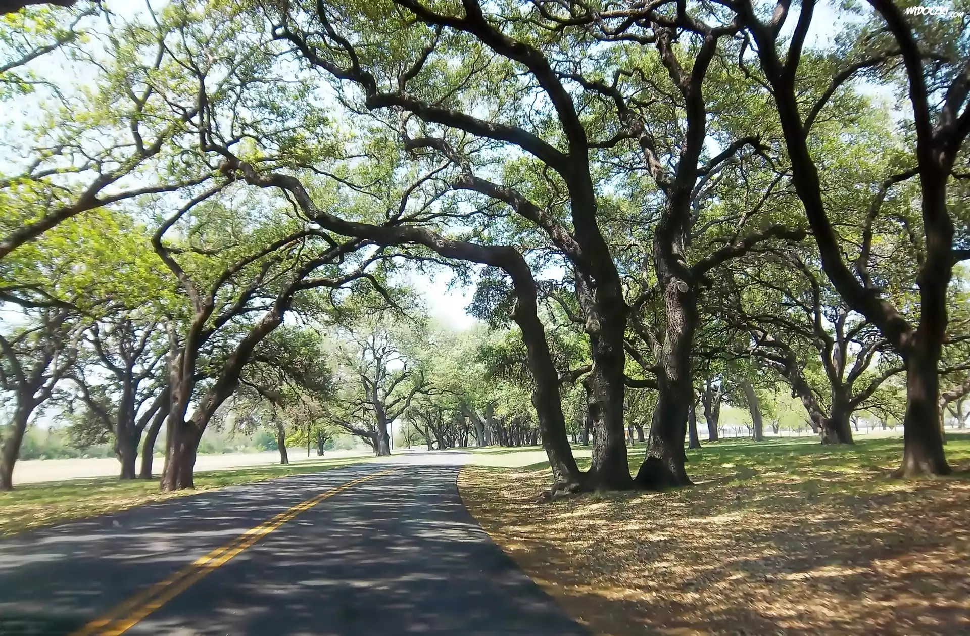 Zdjęcia, Droga, Drzewa, Przebijające, Światło