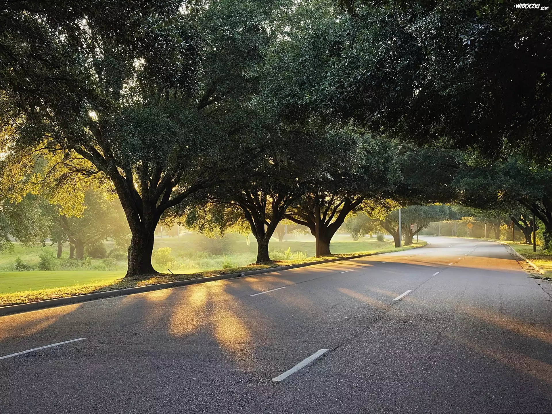 Zdjęcia, Droga, Drzewa, Przebijające, Światło