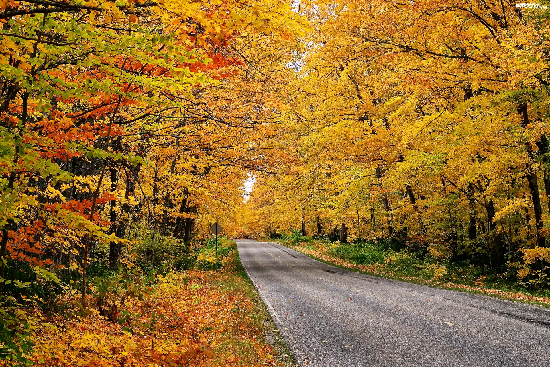 Zdjęcia, Droga, Drzewa, Pożółkłe, Liście, Roślinność, Jesień
