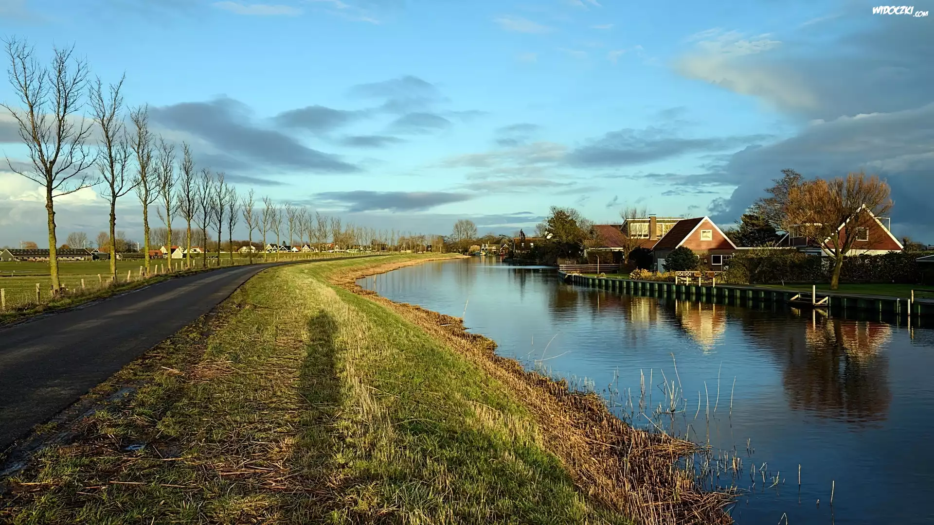 Zdj臋cia, Droga, Drzewa, Rzeka, Domy