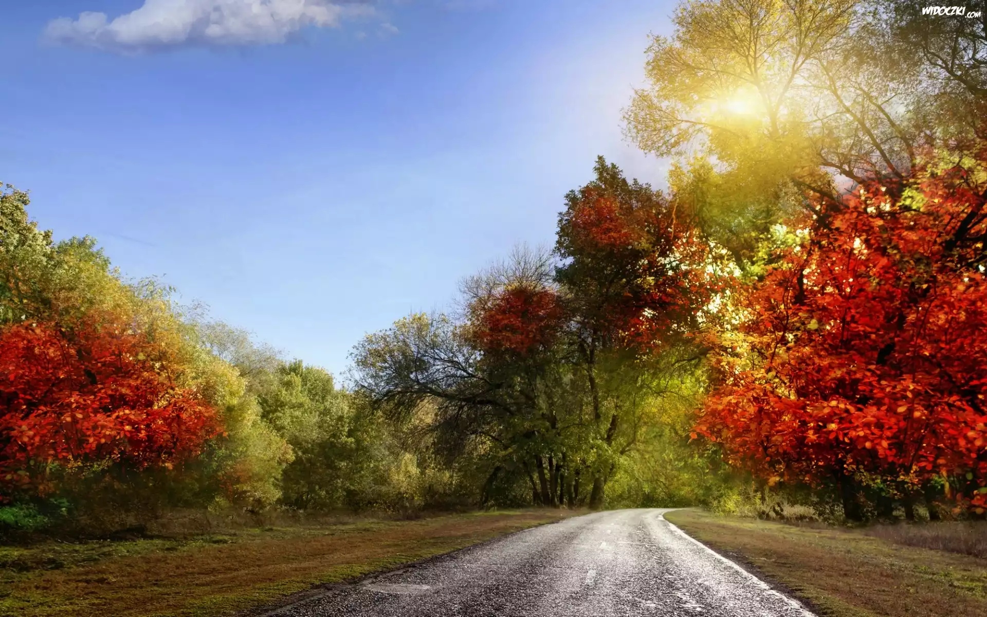 Zdjęcia, Droga, Kolorowe, Drzewa, Promienie, Słońca, Jesień