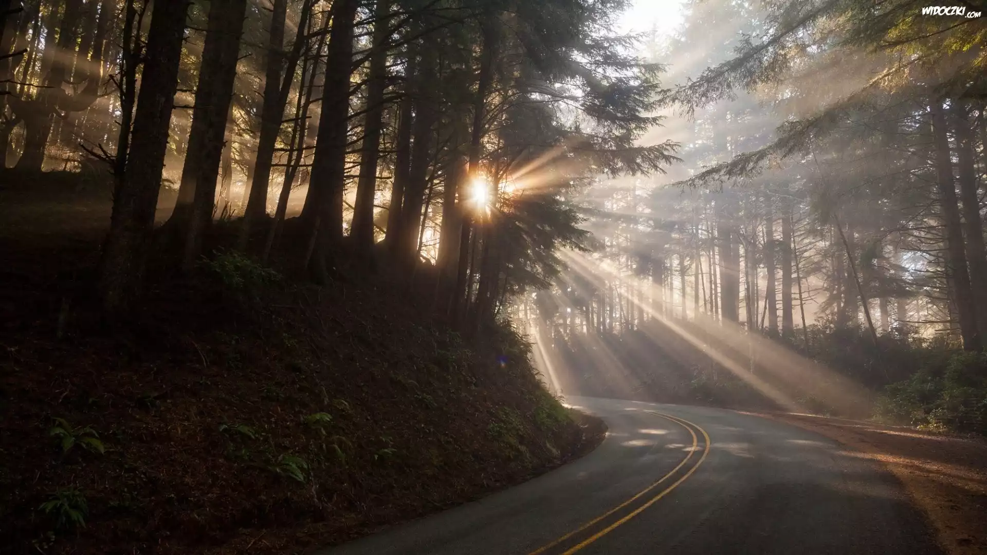 Zdjęcia, Droga, Las, Promienie, Słońca, Mgła