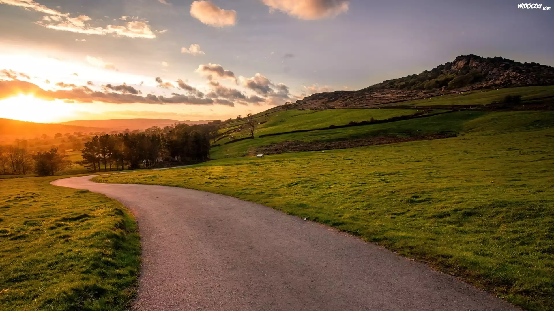 Zdjęcia, Droga, Góry, Zachód Słońca, Łąki