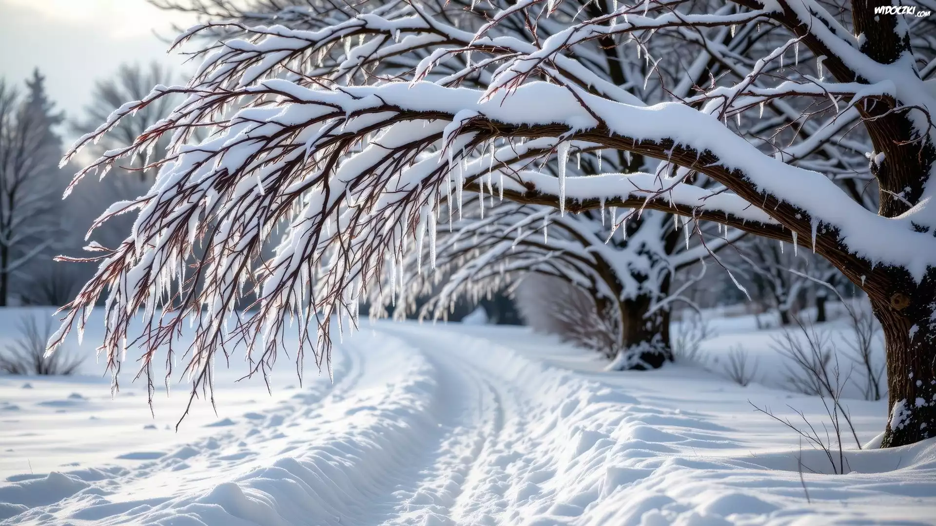 Zima, Śnieg, Ośnieżona, Droga, Drzewa, Sople