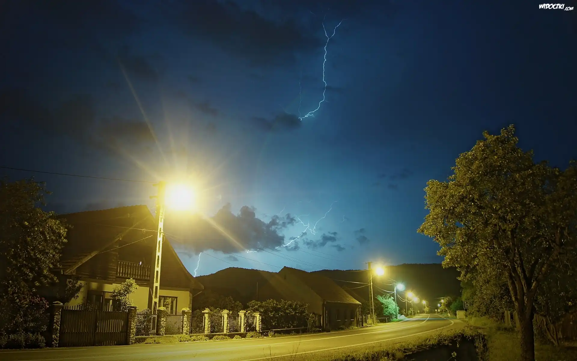 Zdjęcia, Droga, Domy, Noc, Światła, Lamp