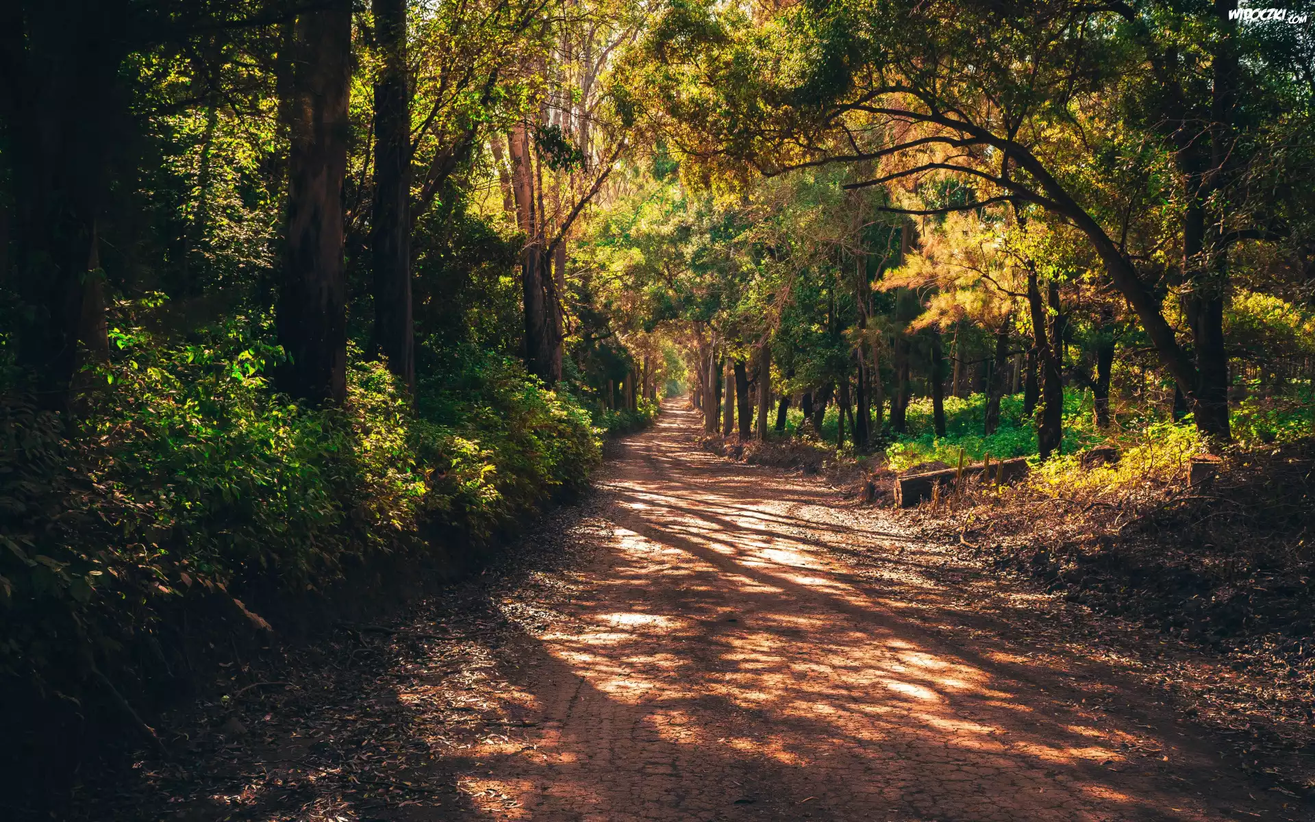 Zdjęcia, Droga, Las, Drzewa, Światło, Słoneczne