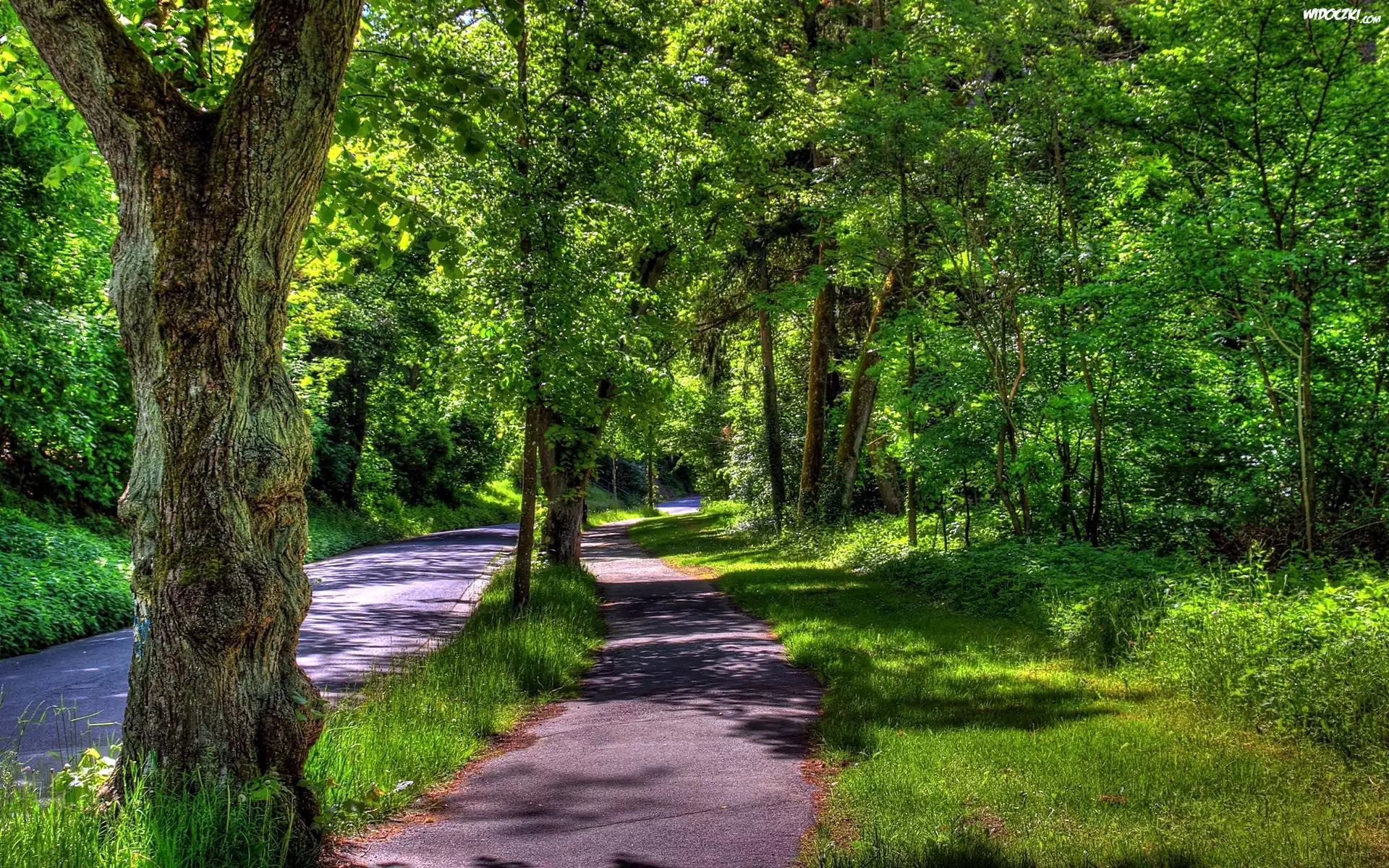 Zdjęcia, Droga, Chodnik, Przebijające Światło, Las