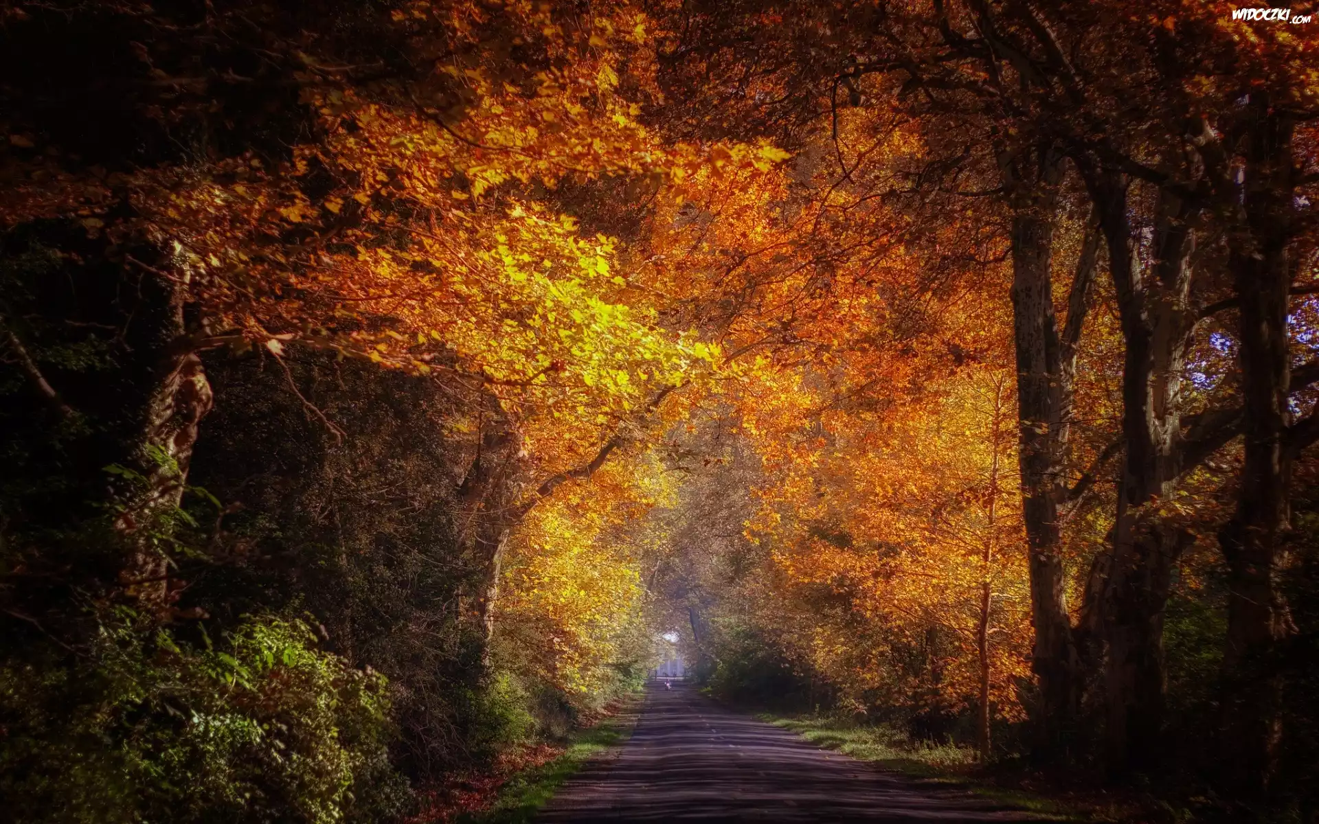 Droga, Drzewa, Przebijające, Światło, Jesień