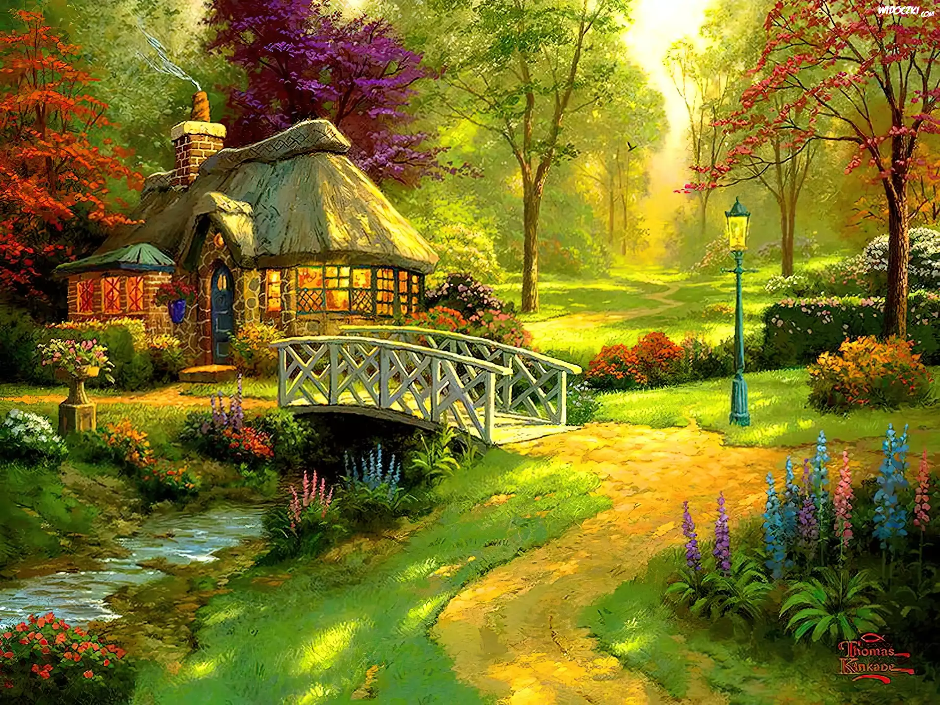 Zdjęcia, Droga, Domek, Ogród, Widoczek, Malarstwo