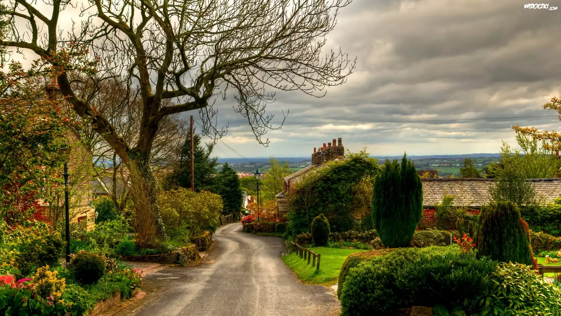 Zdjęcia, Droga, Chmury, Domy, Wieś, Anglia