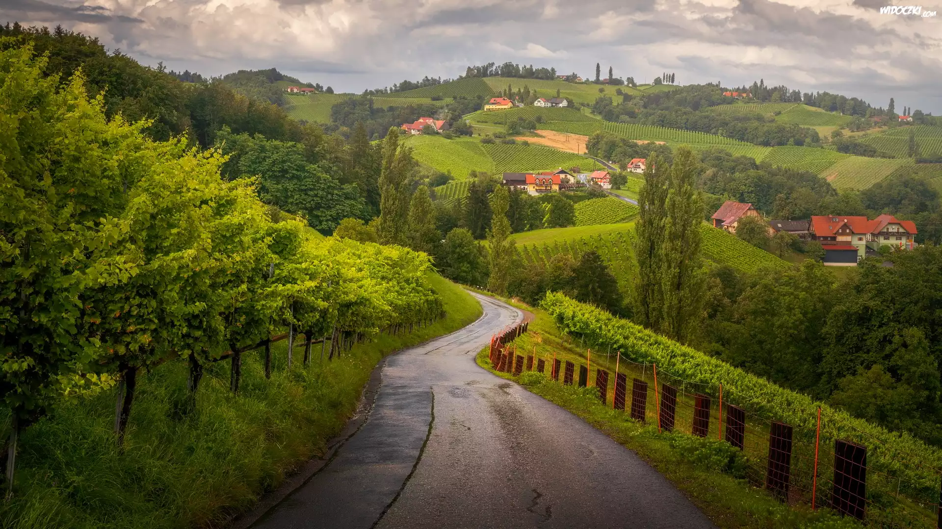 Zdjęcia, Winnice, Droga, Pola, Domy, Sudsteiermark, Styria, Austria