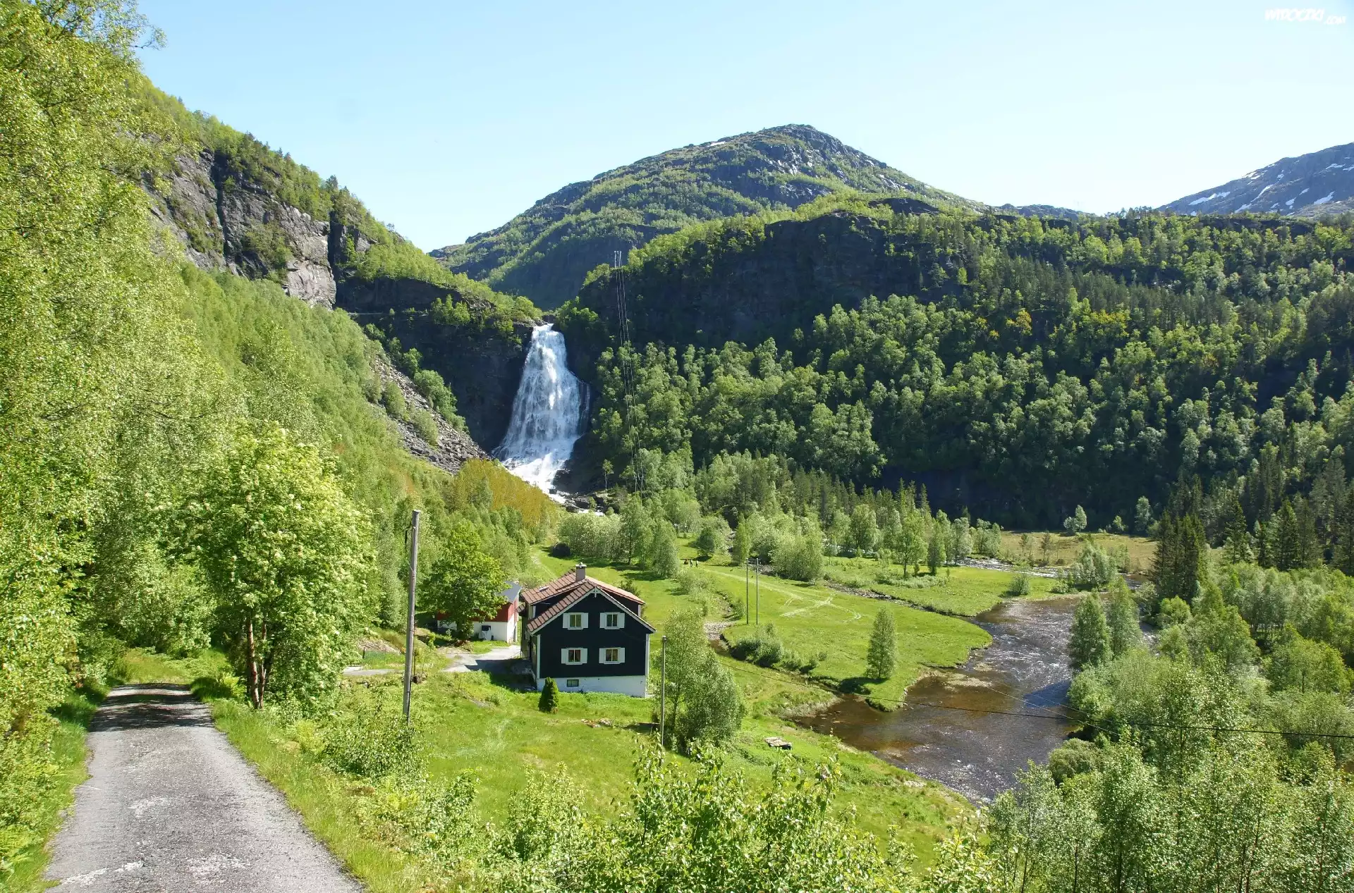 Zdjęcia, Droga, Góry, Wodospad, Drzewa