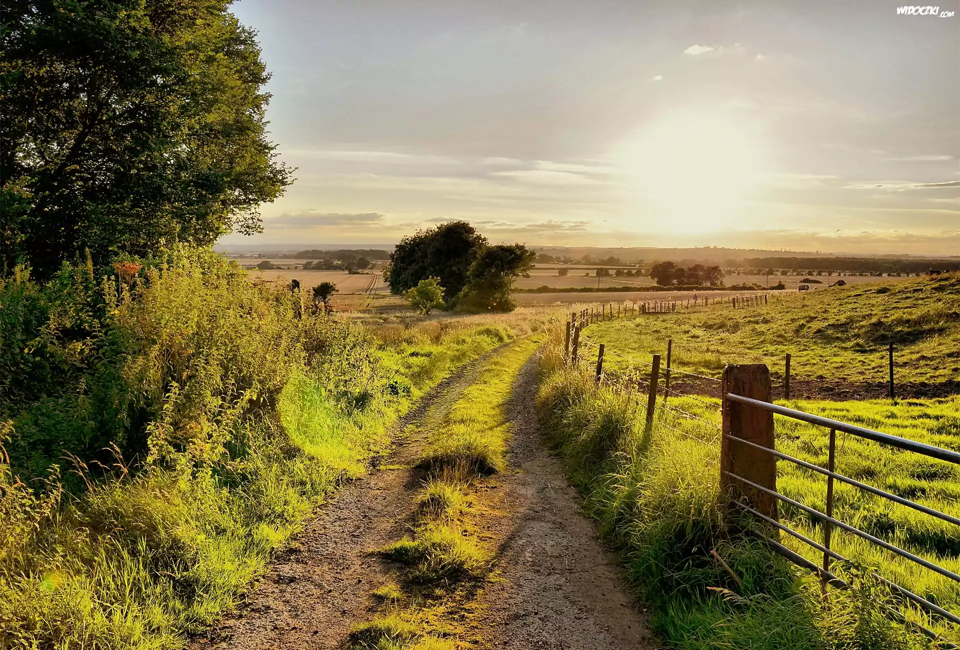 Zdjęcia, Droga, Pola, Ogrodzenie, Wschód, Słońca