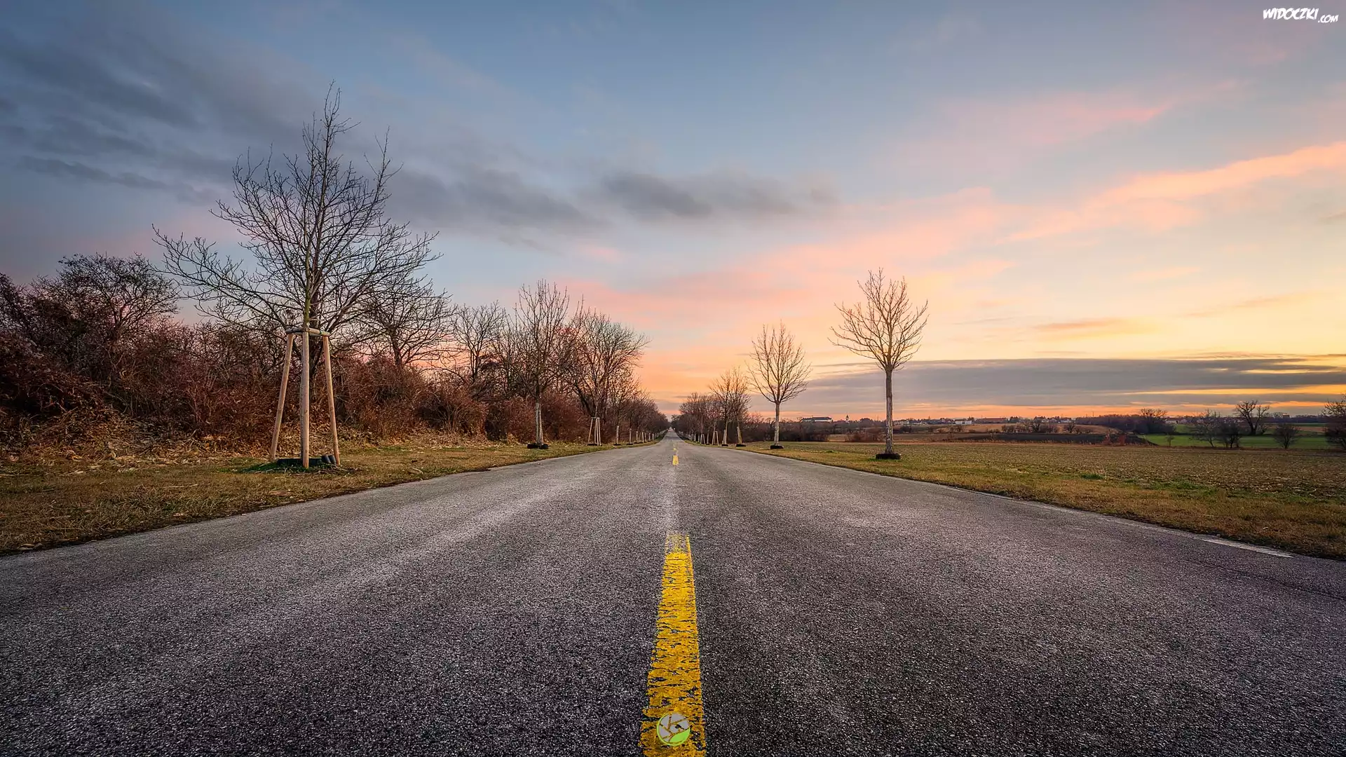 Zdjęcia, Zachód słońca, Drzewa, Droga