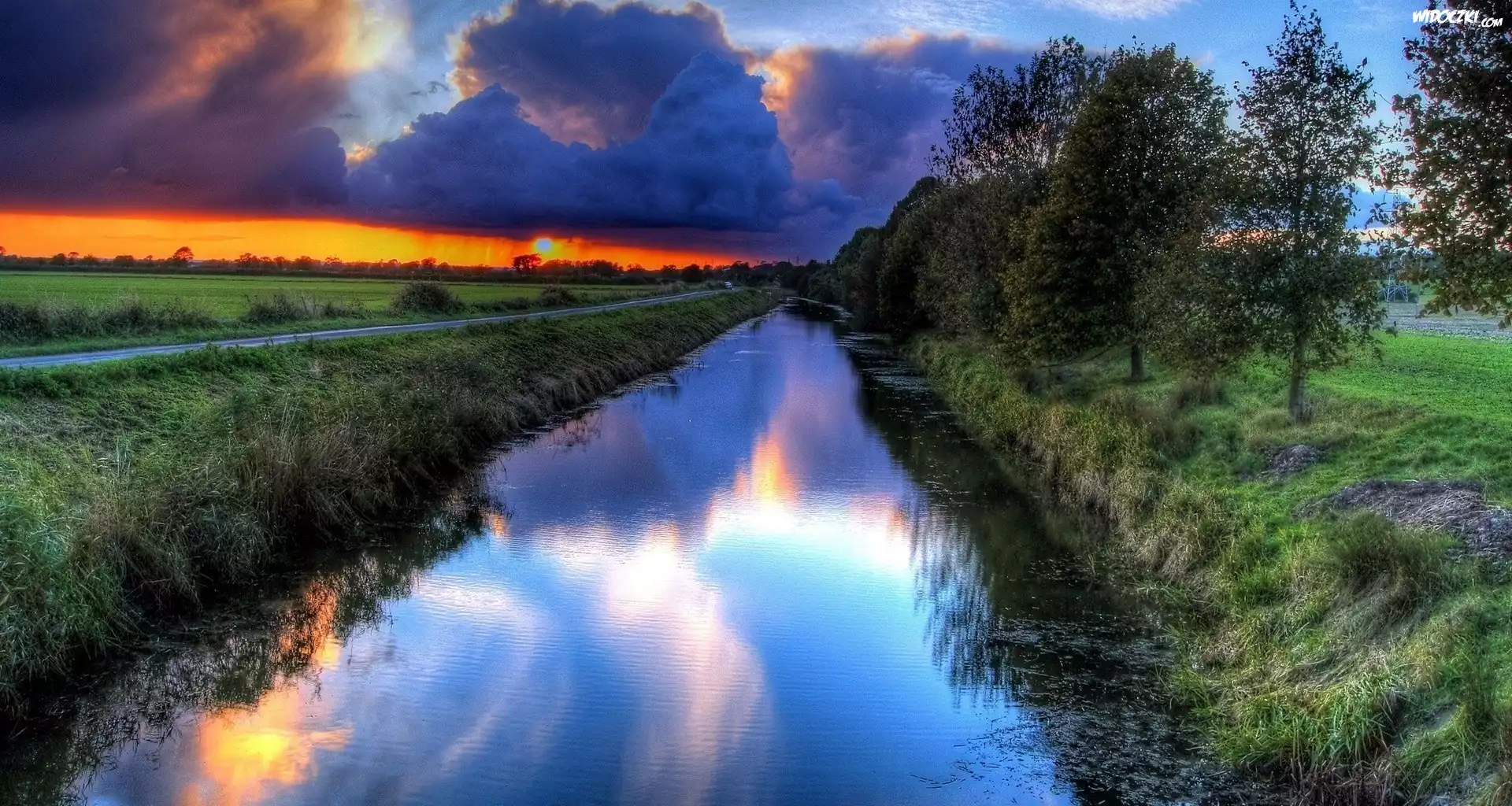Zdjęcia, Droga, Rzeka, Zachód Słońca