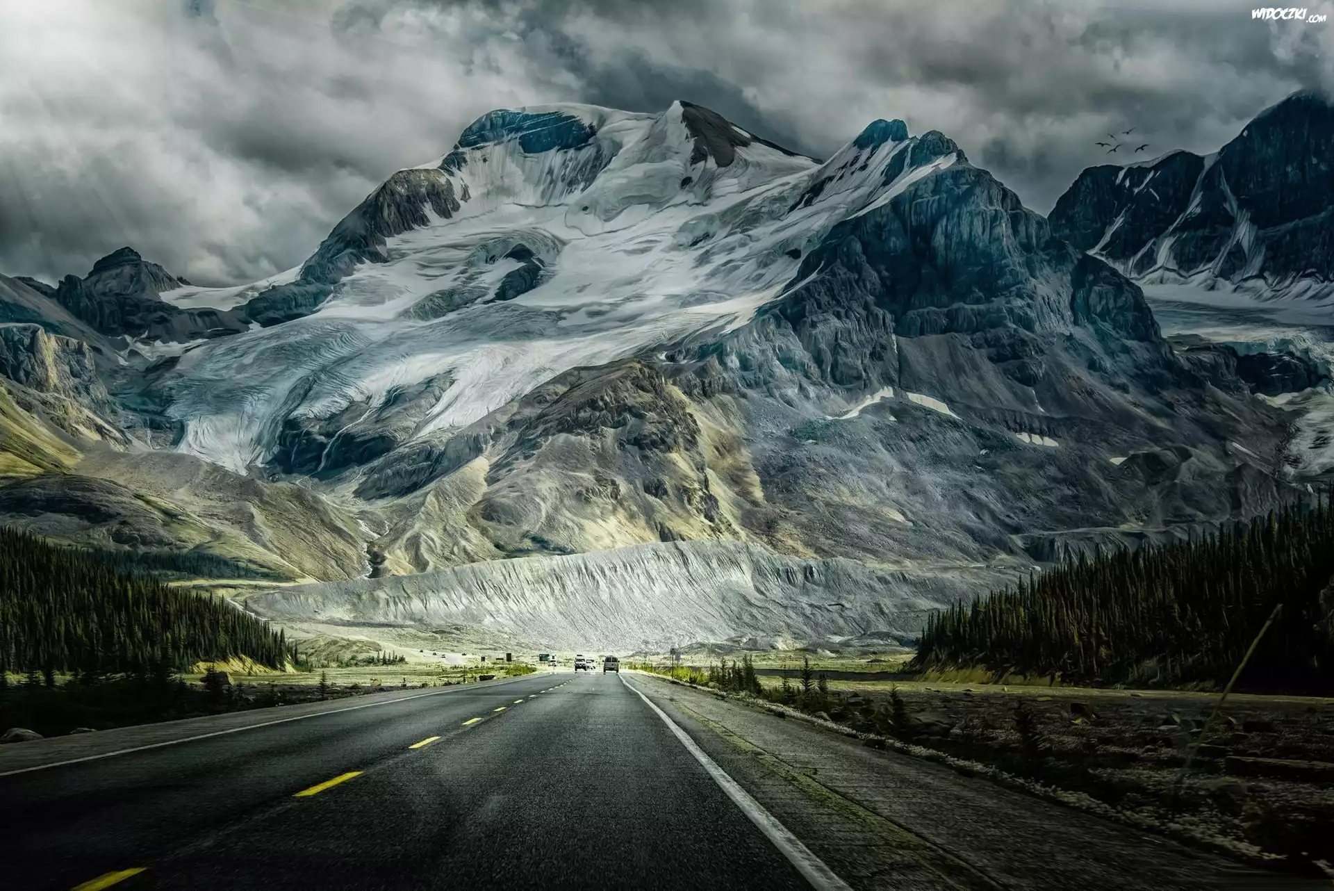 Droga, Góry, Zaśnieżone szczyty