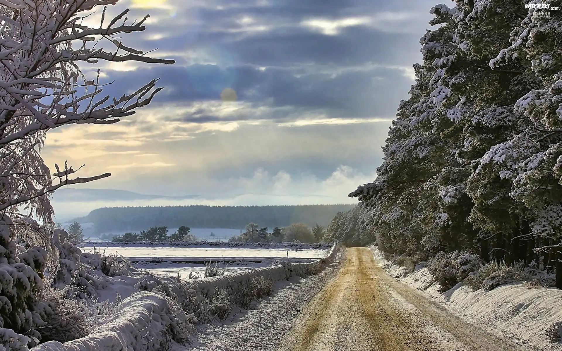 Zdjęcia, Zima, Droga, Drzewa