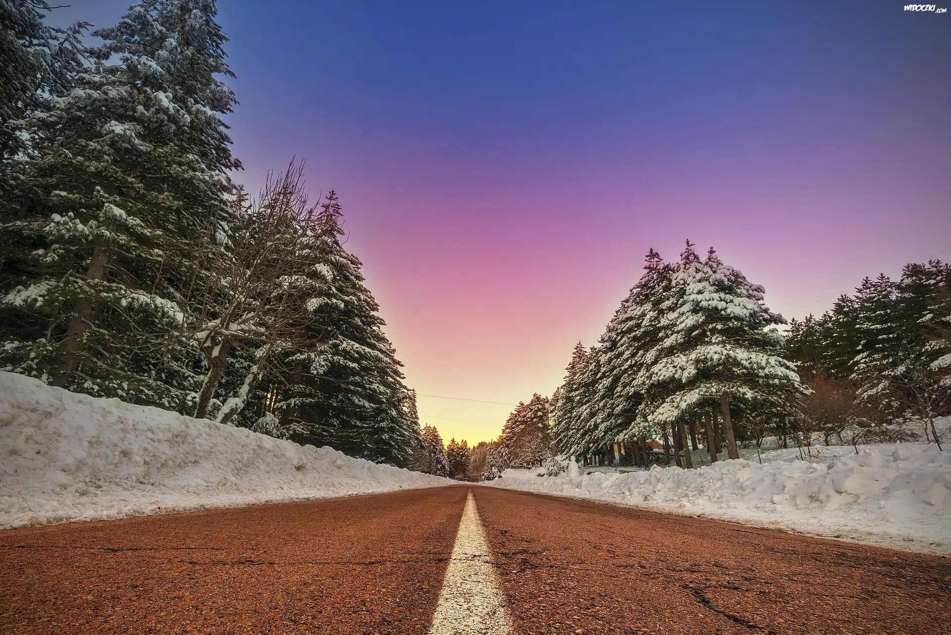 Zdjęcia, Zima, Droga, Drzewa