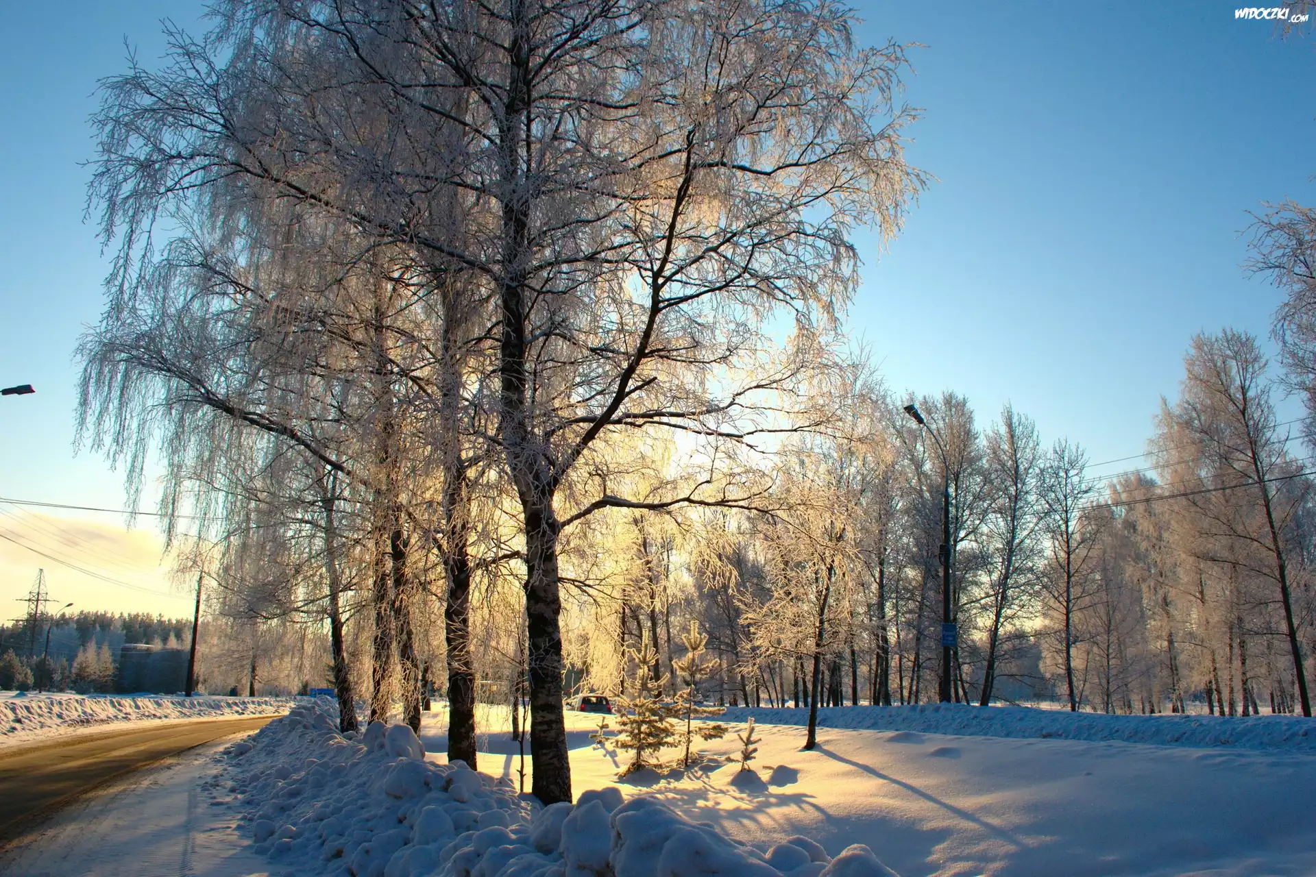 Zdjęcia, Zima, Droga, Drzewa