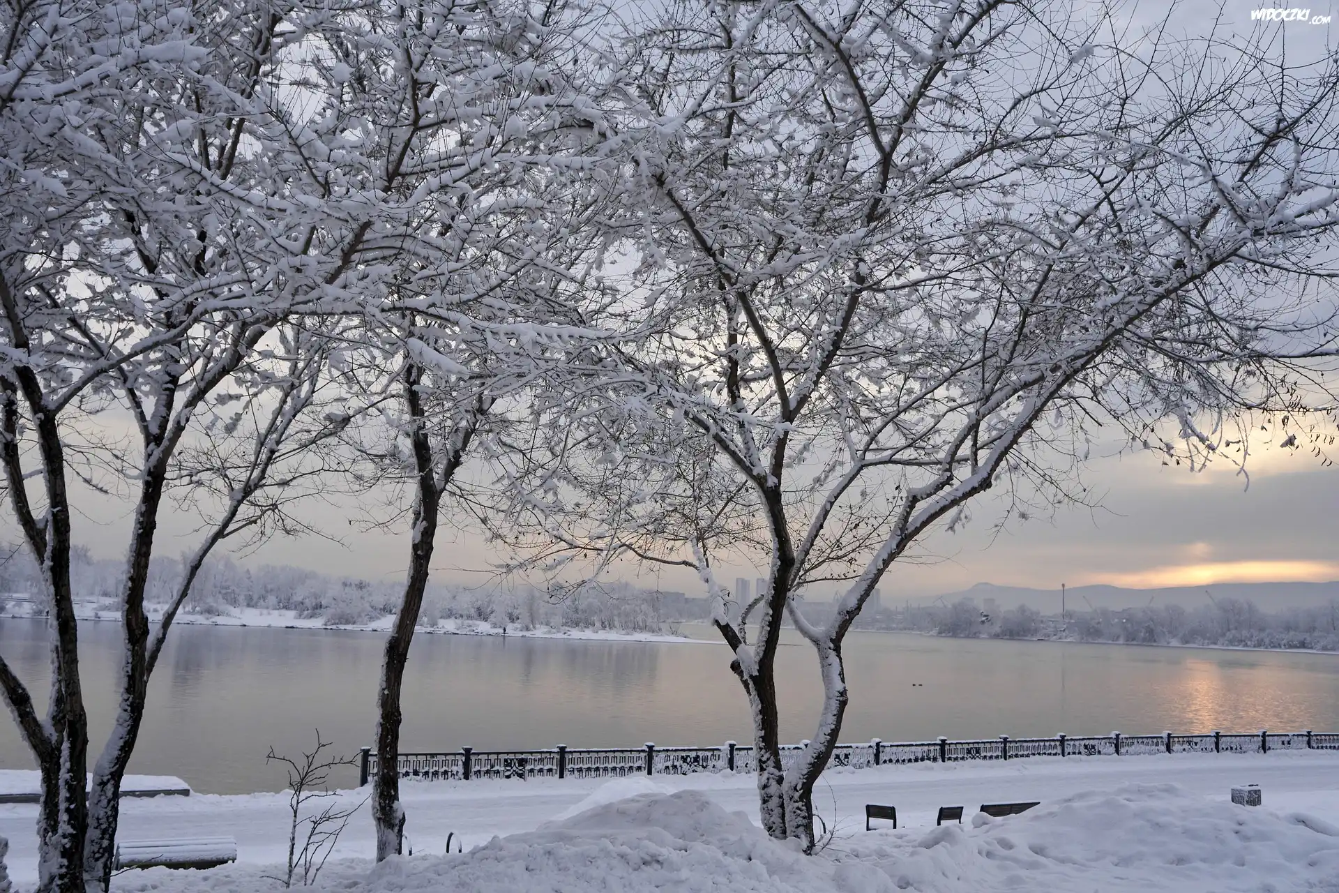 Zdj臋cia, Zima, Rzeka, Drzewa, Droga