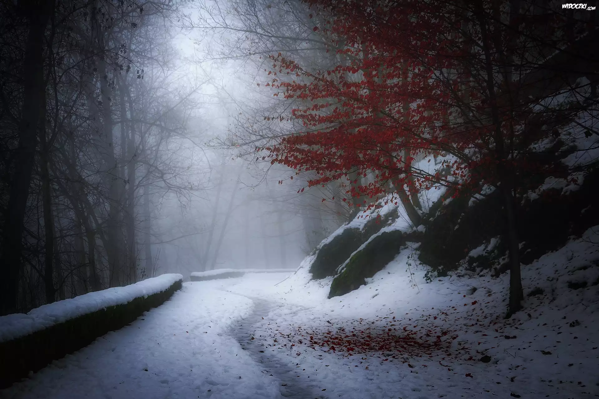 Zdjęcia, Droga, Zamglony, Las, Zima, Wzgórze