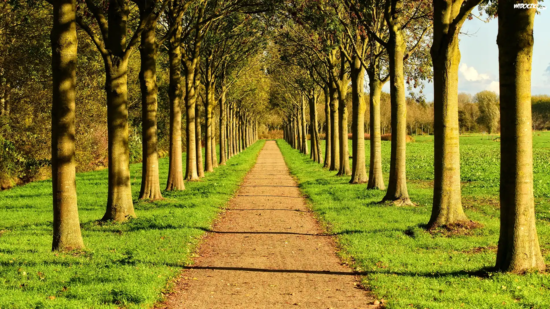 Zdjęcia, Dróżka, Szpalery, Drzewa, Trawa