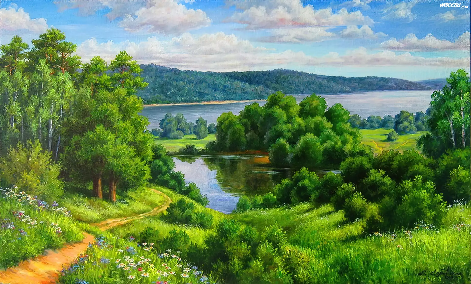Dróżka, Łąka, Rzeki, Lato