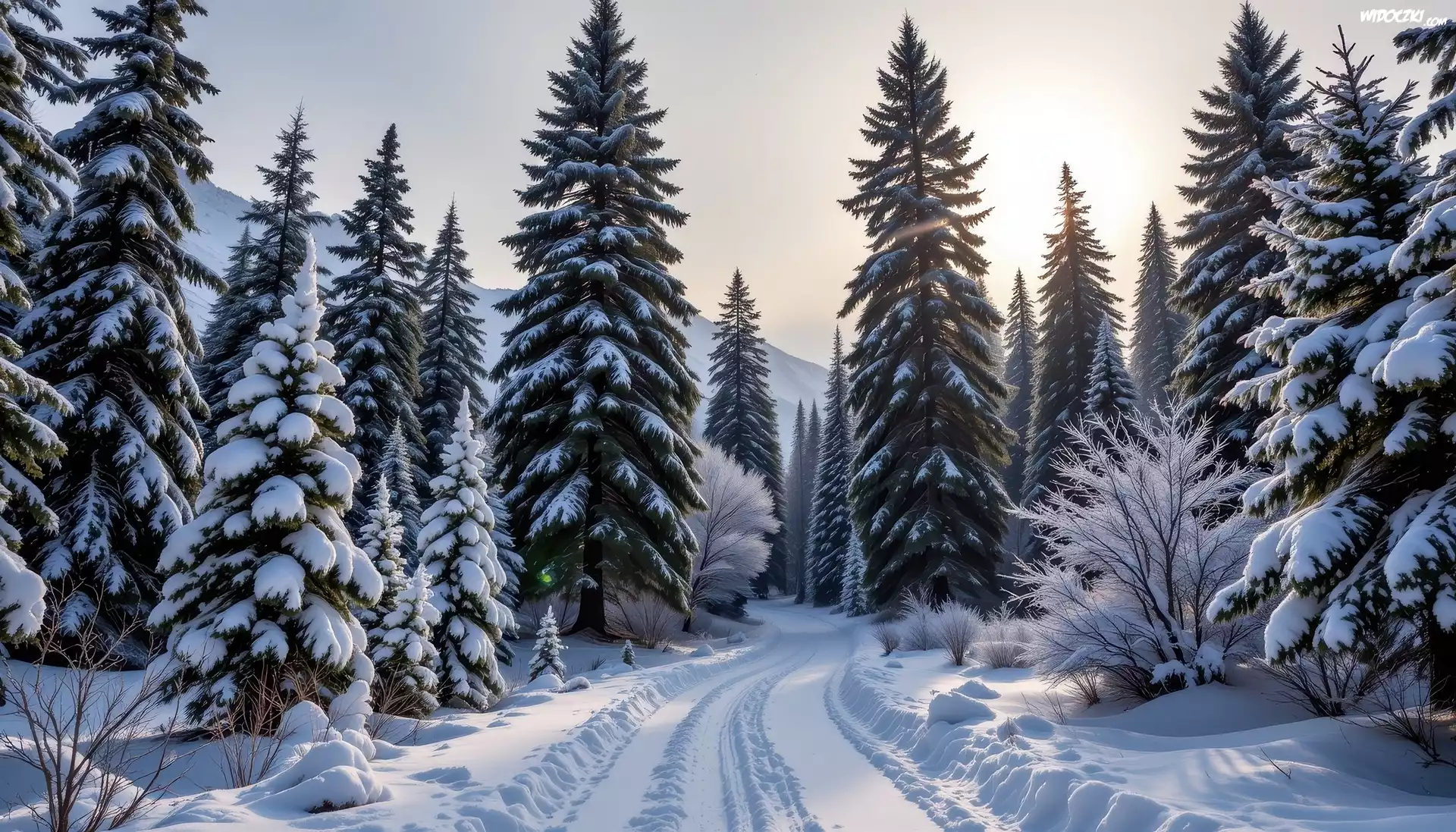 Zdjęcia, Zima, Droga, Las, Drzewa, Grafika AI