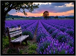 Zdjęcia, Pole, Lawenda, Ławka, Drzewa, Góry, AI