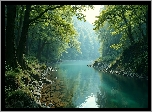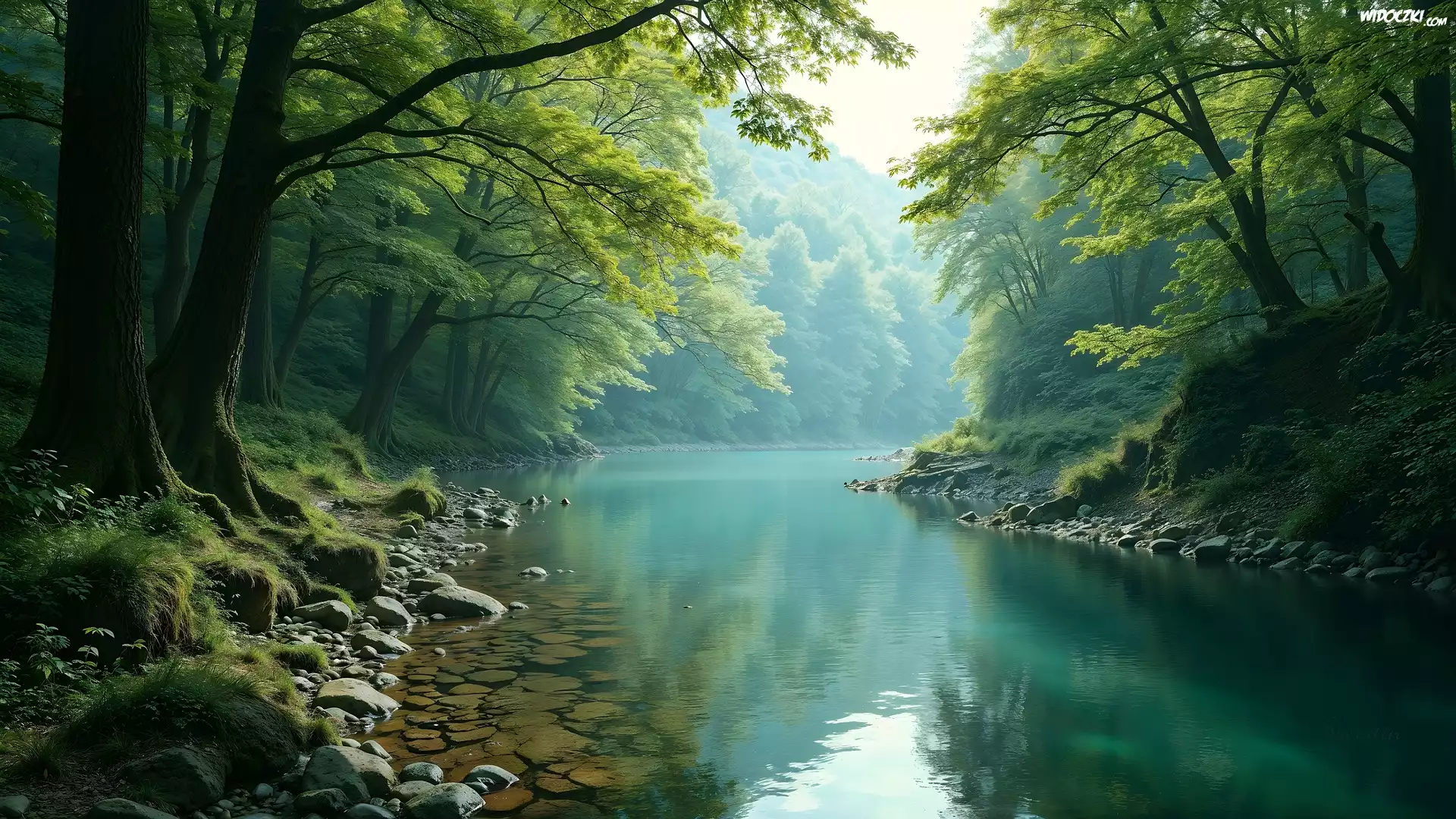 Rzeka, Las, Zielone, Drzewa, Kamienie, AI