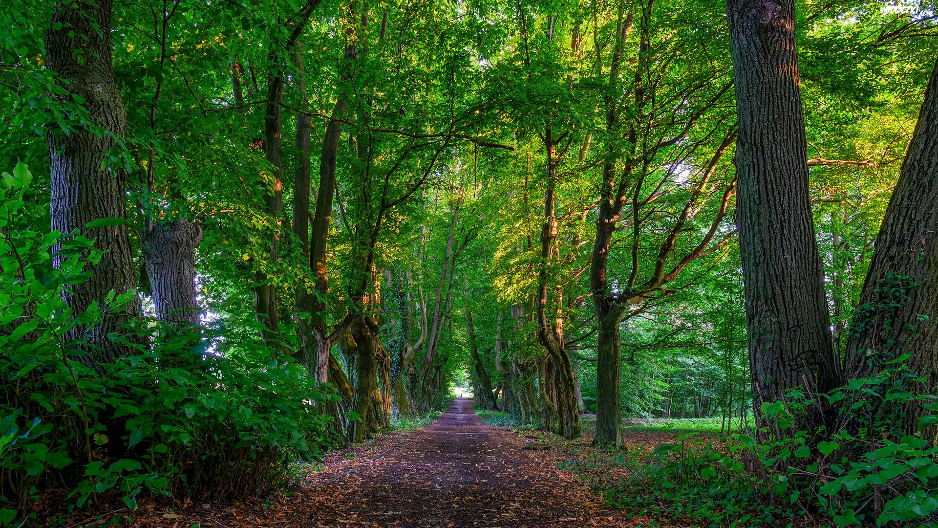 Zdj臋cia, Zielone, Drzewa, Aleja, Droga, Lato