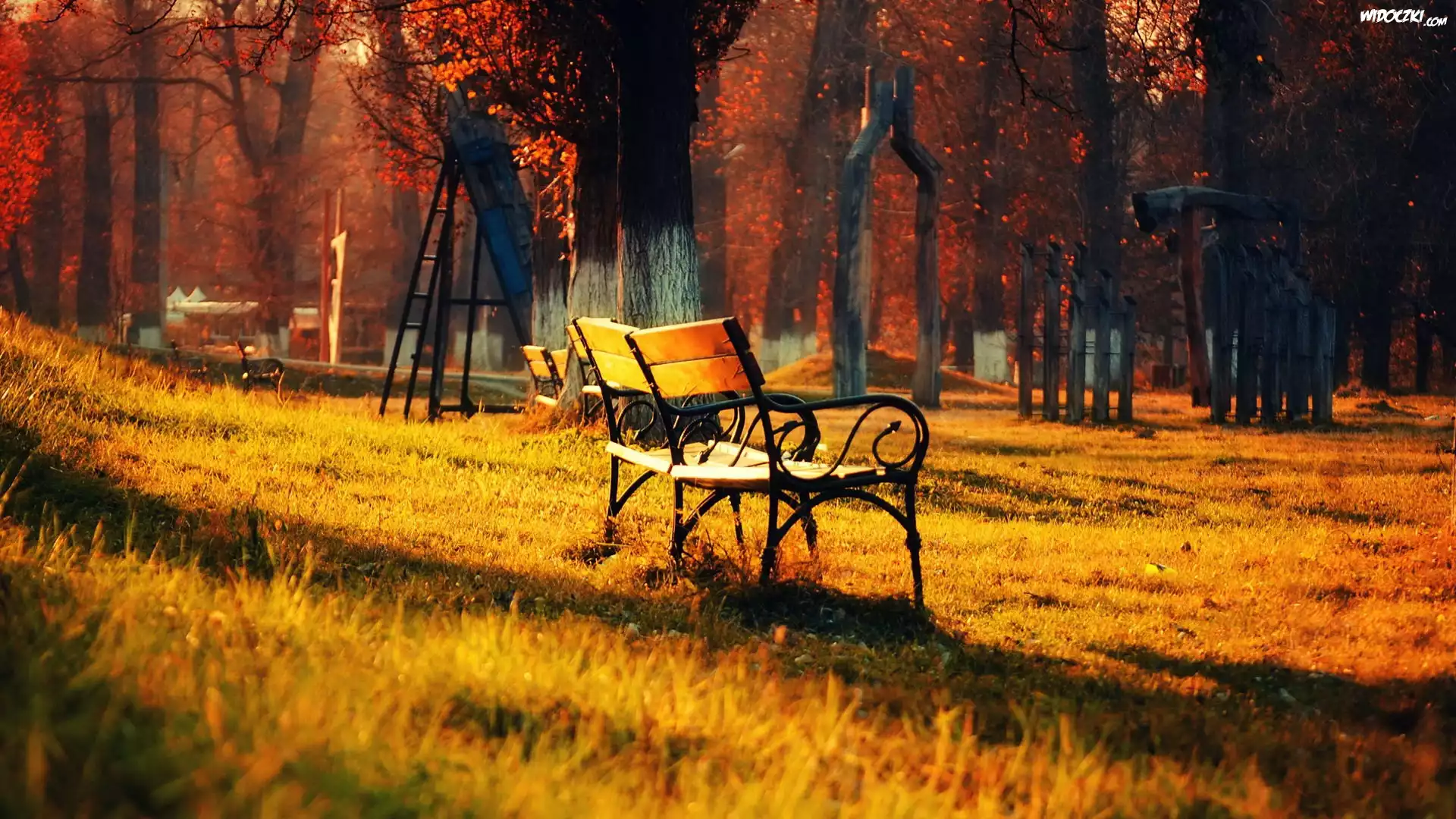 Zdjęcia, Ławeczki, Drzewa, Drabinka