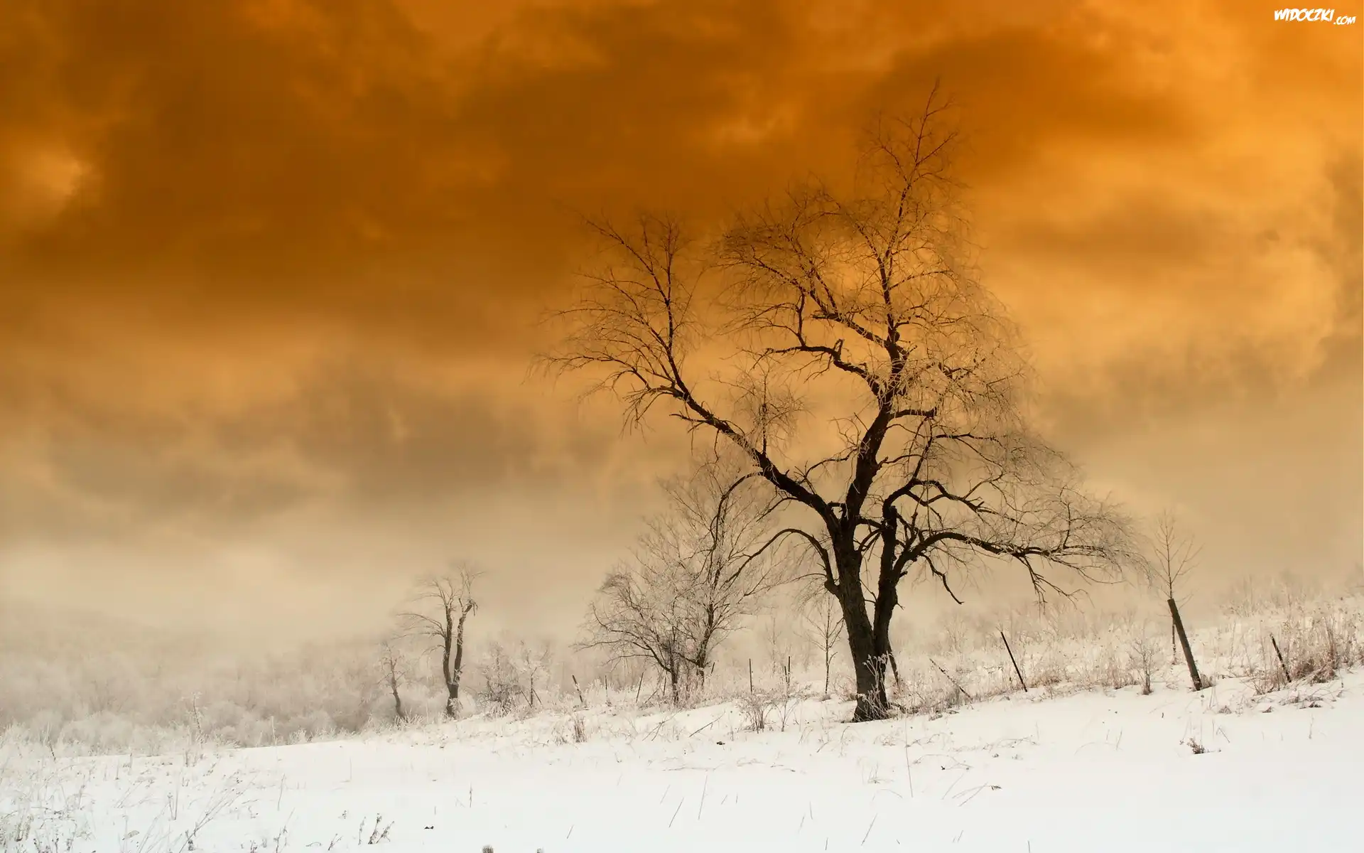 Zdj臋cia, Drzewa, Pola, Droga, Chmury, Zima