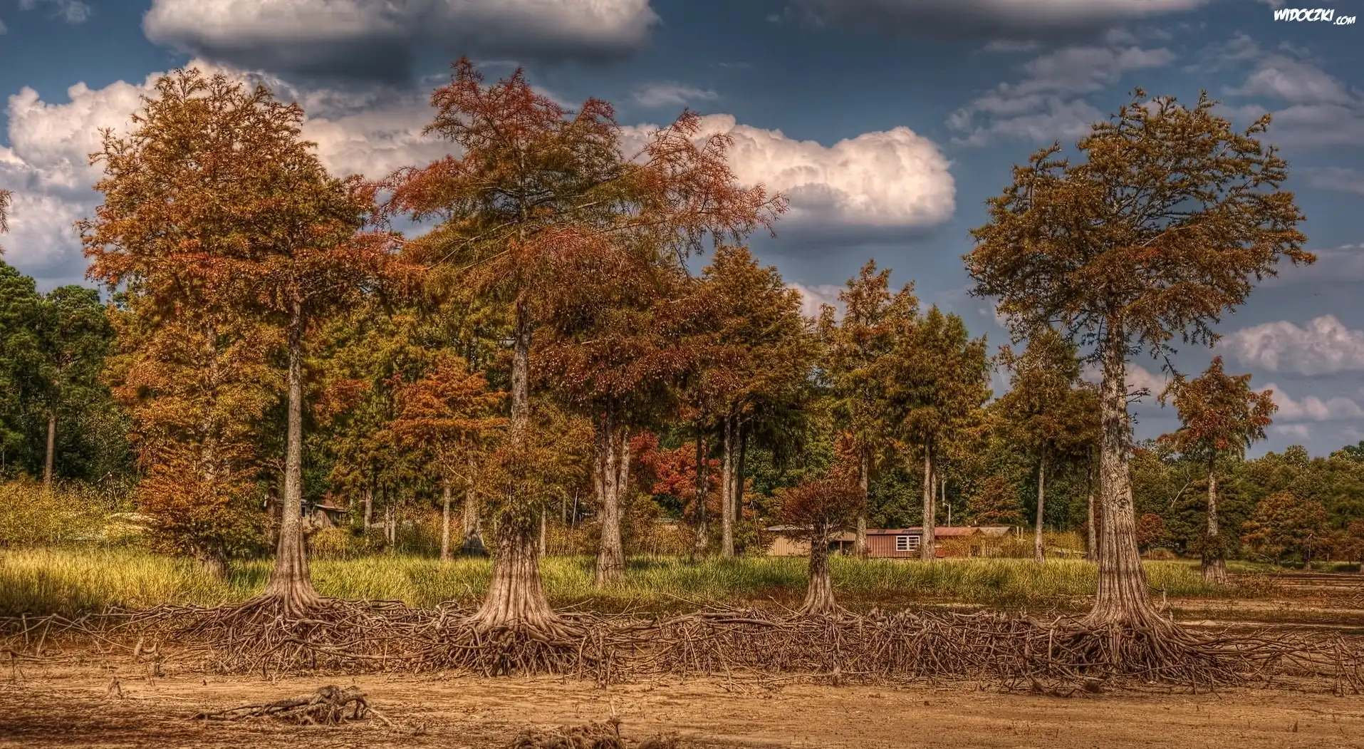 Zdj臋cia, Chmury, Drzewa, Korzenie