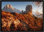 Zdjęcia, Włochy, Góry, Dolomity, Skały, Cinque Torri, Jesień, Drzewa